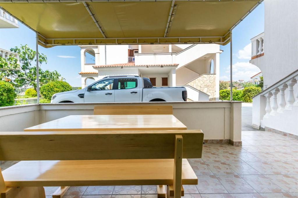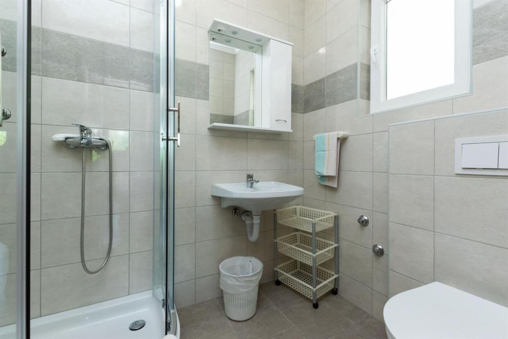 Apartmani se nalaze u mirnom kvartu, svega 10 metara od plaže( pješčane). Svaki apartman ima pogled na more. Na raspolaganje stavljamo našu vrtnu sjenicu sa roštiljem. Svaki apartman ima osigurano i parkirno mjesto.