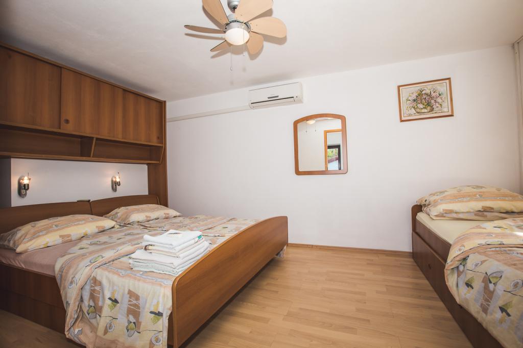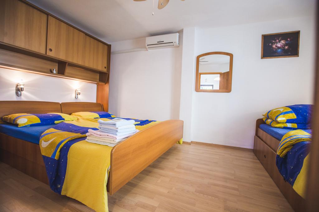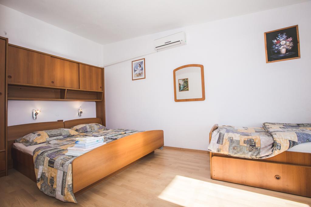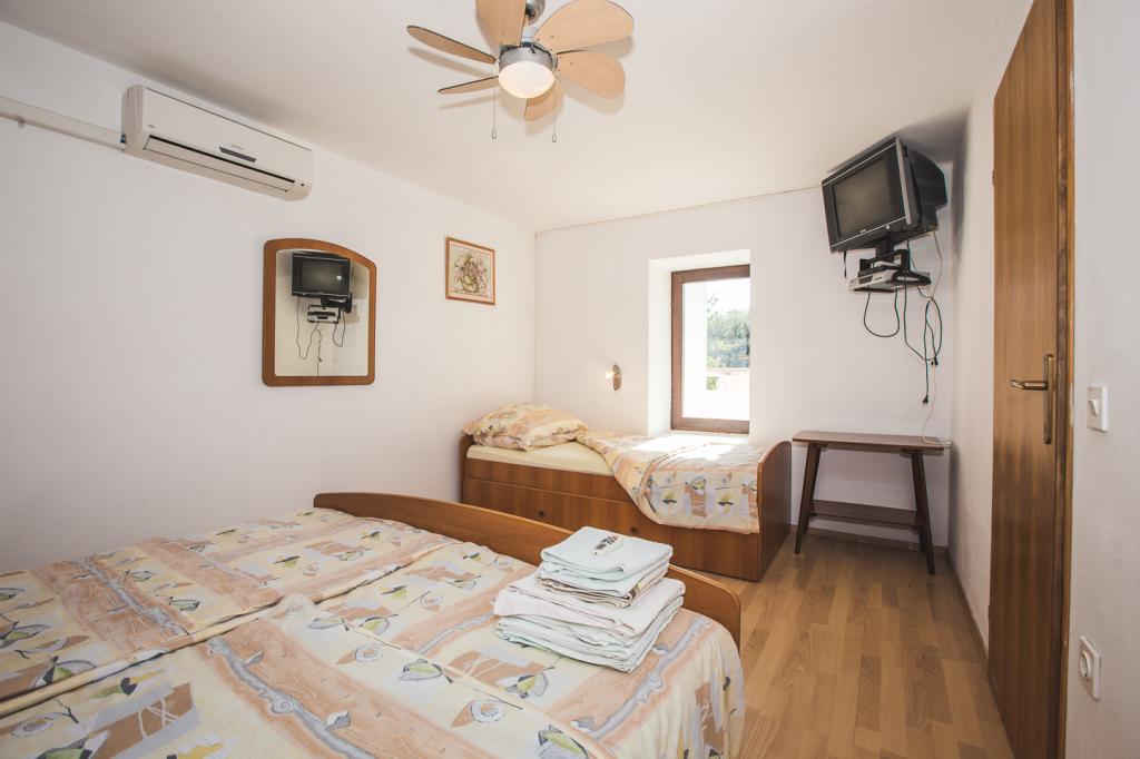 Apartmani Jug - Lopar Dobrodošli u apartmane Jug! Lopar, pješčani raj! Naši obiteljski apartmani nalaze se u mjestu Lopar na otoku Rabu (Hrvatska). Tu možete uživati u svim blagodatima otoka, u bogatoj turističkoj ponudi ili kulturno umjetničkim znamenitostima. Lopar ima 22 prekrasne pješčane plaže koje su idealne za sve dobne skupine. Rajska plaža je najpoznatija plaža u Loparu, a osobito je pogodna za obitelji s malom djecom. Tu su i poznate plaže za nudiste kao što je plaža Sahara, plaža Ciganka i sl. Lopar obiluje prirodnim bogatstvima, bogatom prošlošću uz tradiciju i povijesno nasljeđe koje čine osnovu turističke djelatnosti. Moći će te uživati u raznim gastronomskim delicijama pripremljenim na tradicionalan način! Udaljeni samo 500 m od poznate Rajske plaže i prvih restorana, idealna pozicija Vaš za godišnji odmor. Na mirnoj lokaciji, udaljeni od gužvi , uživati ćete u svježem zraku sa pogledom na more i zelenilo. Apartmani Jug udaljeni su od ambulante i pošte 700m, od trgovine 500m, a od centra Lopara i sporsko-zabavnih sadržaja 600m. Svim gostima je osigurano parkirno mjesto na natkrivenom parkiralištu, a gosti mogu koristiti i vanjski roštilj i kotlić. Tu ćete, na terasi i kamenoj klupici moći pripremiti razna mesna i riblja jela i tako razveseliti i okupiti svoje najbliže. Apartmani su klimatizirani, sa besplatnim pristupom internetu i satelitskom TV. Posjetite nas i provedite svoj idealan godišnji odmor u apartmanima Jug! Veselimo se Vašoj posjeti!