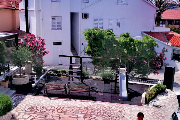 Kompletno i novo uređeni apartmani i sobe na uzvišenom dijelu Lopara na otoku Rabu. Smješteni smo 300m od mora te predivne i dobro nam poznate Rajske plaže, 500m do prve trgovine te 300m do centra. Gosti imaju na raspolaganju otvoreni bazen sa terasom za sunčanje te dječije igralište. Sobe i apartmani su uređeni u toplim tonovima. Gosti u dvorištu kuće imaju na raspolaganje ala cart restoran. Svim gostima je osiguran prostrani i besplatan parking u predjelu kuće.
