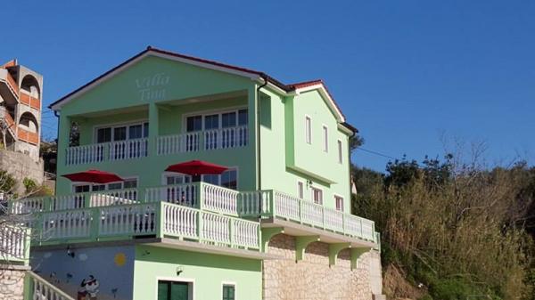 Apartmani Villa Tina vam nude novo izgradjen i uredjen objekt za sve vase potrebe. Sa pogledom na more i vlastitom terasom cete provest svoj godisnji odmor uz uzivanje. Ispred kuce je veliki parking a more i plaza su svega 50m udaljeni, tako da kad idete na plazu ne morate se brinuti gdje cete ostavit auto i koliko ce vam neko naplatit dnevni parking. U svim nasim cijena su uracunati klima, sat tv, i wifi internet. Ne morate brinuti o nikakvim dodatnim troskovima. Potpuno opremljena kuhinja ce takodjer zadovoljit sve vase potrebe. Ako izaberete nasu kucu za vas odmor necete se razocarat i sve vase zelje ce bit ispunjene i nadmasene.