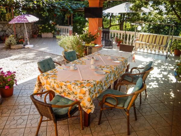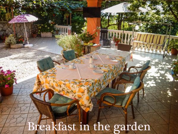 Kuća, vrt, pogled s terase na cijeli Kvarnerski zaljev....sve je predivno! Kuća se nalazi u vrlo lijepom, mirnom dijelu Lovrana, a sve je blizu i dostupno za nekoliko minuta hoda (plaža, market, centar, stari grad, Lungomare, polazna stanica autobusa za Opatiju i Rijeku..). Domaćini su izuzetni ljudi, gostoljubivi i na raspolaganju a istovremeno potpuno nenametljivi i diskretni, dok su sobe, kao i cijela kuća, savršeno čiste i udobne. Naša želja je da se svakako vratimo bar još jednom na ovo čarobno mesto!