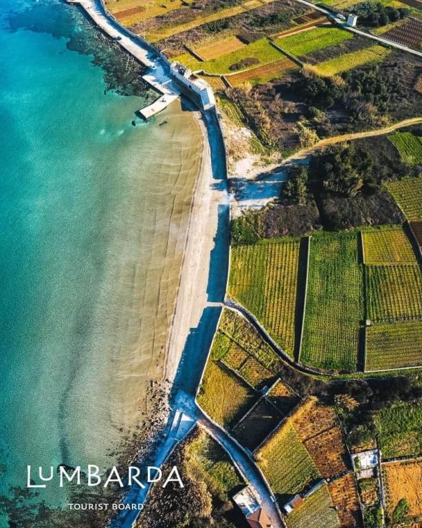 Kompletno i suvremeno opremljeni apartman F2 Lumbarda Resort smješten je u prekrasnoj Lumbardi u malom turističkom naselju s puno zelenila, odmah uz more, na 70 metara od plaže Prvi Žal. Apartman se sastoji od spavaće sobe s krevetima za dvije osobe gdje se može po potrebi dodati pomoćni ležaj za treću osobu, dnevnog boravka sa trosjedom na razvlačenje gdje mogu spavati dvije osobe, kuhinje, kupanice s tuš kadom i prostrane natkrivene terase sa koje se pruža pogled na more i planine sa vrtnim trosjedom, stolom sa četiri stolice i dodatnom foteljom. Kuhinja je opremljena s električnom pećnicom, mikrovalnom pećnicom, električnim kuhalom, električnom pločom za kuhanje, perilicom posuđa, velikim hladnjakom sa zamrzivačem i posuđem za kuhanje. Apartman je klimatiziran i ima satelitski TV. U sklopu resorta u kojem se nalazi apartman gostima je besplatno na raspolaganju vanjski bazen, vrt, WiFi i parking. U neposrednoj blizini se nalazi beach bar, trgovina i nekoliko restorana i kafića