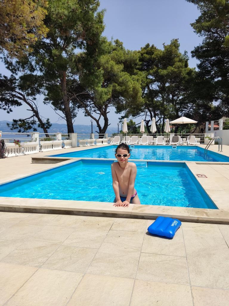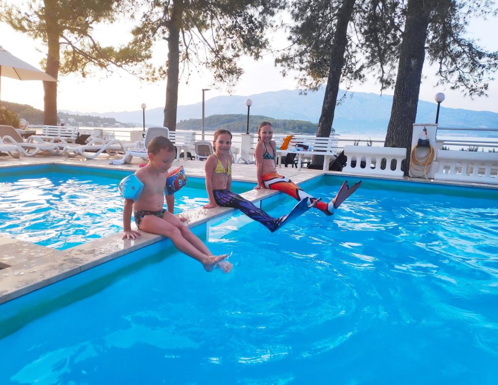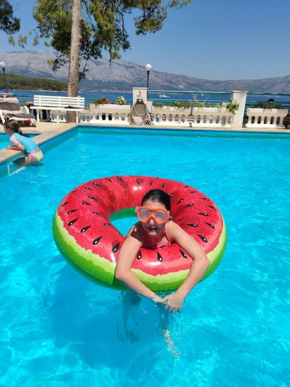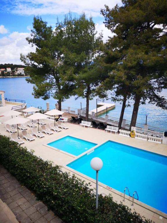 Odlična lokacija uz čisto more a na raspolaganju je i bazen što se posebno svidjelo djeci, lijepa terasa, ugodna hladovina velikih borova, ljubazno osoblje, lako dostupan besplatni parking, blizina plaža...zaista savršeno mjesto za odmoriti dušu i tijelo