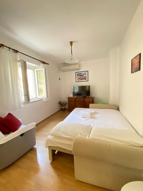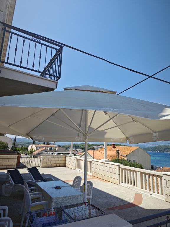 Ako tražite opuštajući odmor, okruženi prirodom i prekrasnim morem, Lumbarda je savršeno mjesto. Iznad svega, Ivanin prostrani apartman savršen je za svaku potrebu. Ne nedostaje mu apsolutno ništa. Ulazni hodnik, udobna kuhinja, potpuno opremljena kupaonica i dvije velike spavaće sobe koje se otvaraju na prekrasnu ogromnu terasu s pogledom na more i otoke (fotografije ne čine pravdu). Čisto čudo... zajamčeno!! Lokacija je također super praktična: centar je vrlo blizu, ali ne možete čuti čavrljanje veselih večeri, a čak i do najudaljenijih plaža može se doći pješice za 10/15 minuta, a autobus je udaljen 2 minute. Konačno, Ivana je super: vrlo uslužna i prijateljski nastrojena, uvijek vesela i puna savjeta o okolnom području, od izvrsnih restorana do prekrasnih plaža. Ispričavamo se zbog kašnjenja u ponovnom izražavanju naših pohvala za izvrsno gostoprimstvo koje ste primili.