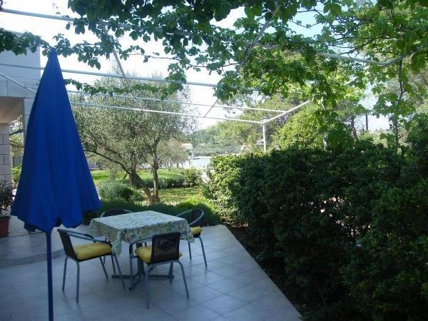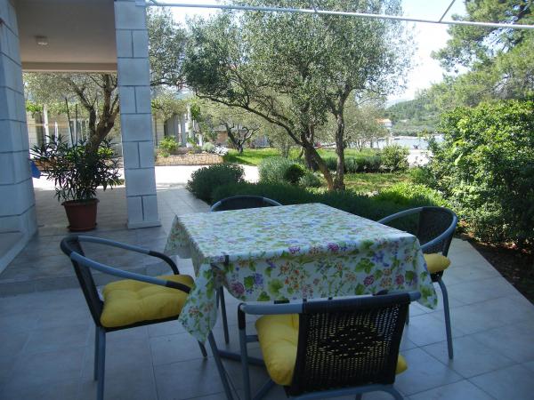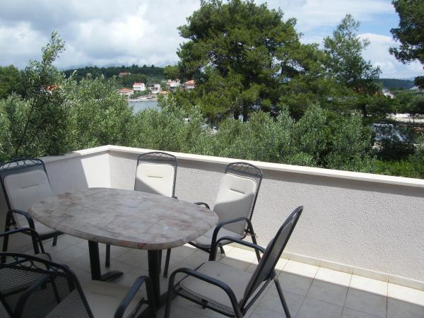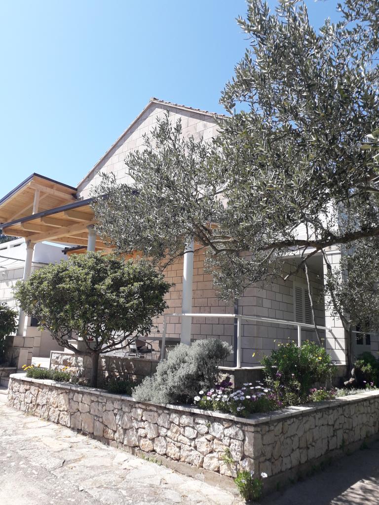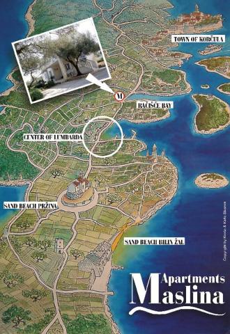 Kompletno i suvremeno opremljeni apartmani smješteni u uvali Račišće na samom ulazu u Lumbardu, prvi red do mora. Objekt se nalazi oko 15 minuta hoda do centra Lumbarde. Cijela je uvala pogodna za kupanje, uglavnom stijene i šljunak, a dvije najveće pješćane plaže su udaljene oko 2000 m. Objekt je okružen stablima maslina a svaki apartman ima pogled na more i svoje parkiralište u ograđenom dvorištu. Autobusna stanica je udaljena oko 30 metara. Ako imate čamac, možete ga usidriti i privezati za mol ispred kuće. Apartman 4 2 ima dvije kupaonice a apartman 4 1 dvije terase. Oba ova apartmana su na katu a apartman 2 2 je u prizemlju.