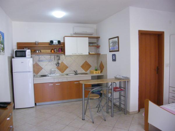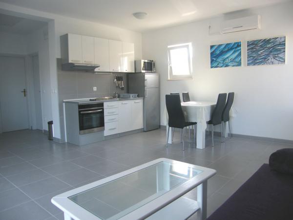 Nažalost, stan se ne nalazi 50 m od plaže kako vlasnik iznajmljuje i navodi u oglasu, ovdje je luka za brodove, to je sve. Stan je čist, ali je u kuhinji vrlo teško pronaći kulturni stol.