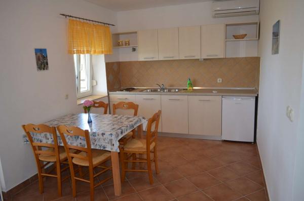 Potpuno opremljeni apartmani smješteni u poznatom lunjskom masliniku s predivnim pogledom na more i obližnje otočiće. Udaljeni su svega 5-10 min hoda od kafića, restorana, dućana i plaže. Siguran odmor i opuštanje u miru i tišini okruženi stoljetnim lunjskim maslinama. Grad Novalja udaljen je svega 15 min vožnje autom, kao i poznata plaža Zrće. Do otoka Raba stiže se za pola sata lokalnom brodskom linijom. U dvorištu kuće nalaz sei gril i stol sa klupama koji su gostima na raspolaganju. Svaki apartaman ima izlaz na balkon na kojemu su sjedeće garniture sa stolićima. Veći apartman ima dvokrevetnu sobu te pomoćni ležej za dvije osobe u prostranom dnevnom boravku. Manji apartman ima dvokrevetnu sobu sa pomoćnim ležajem za jednu osobu ili dvoje djece. Idealno mjesto za opuštanje i odmor daleko od buke i gužve.