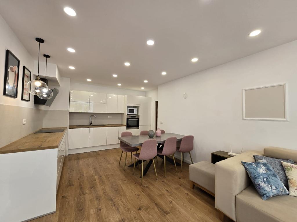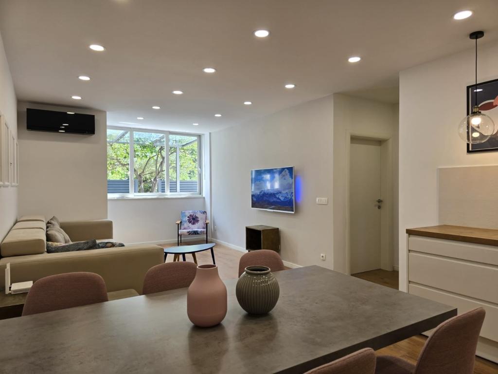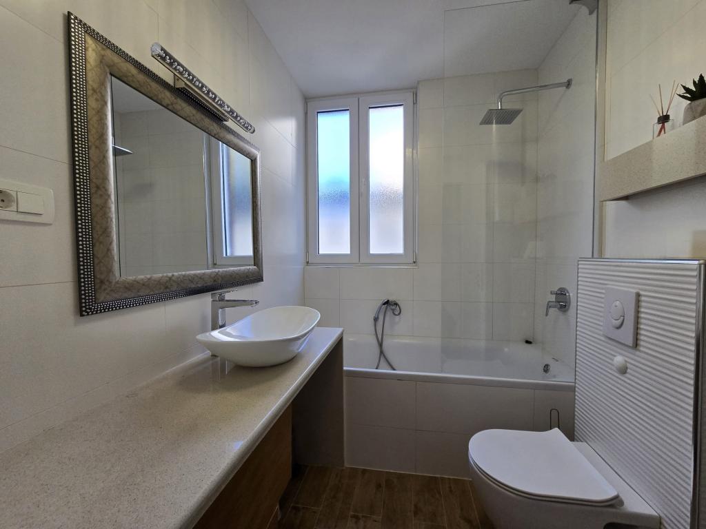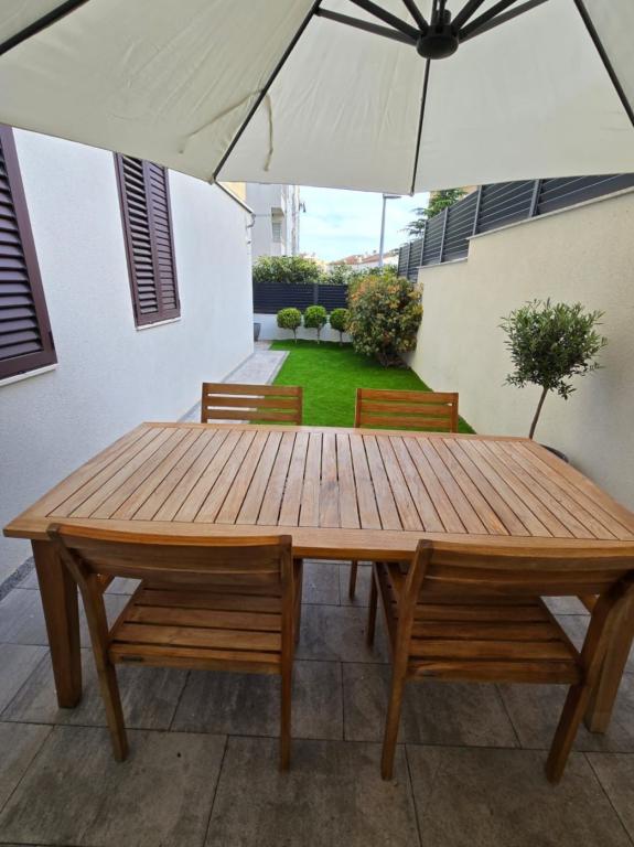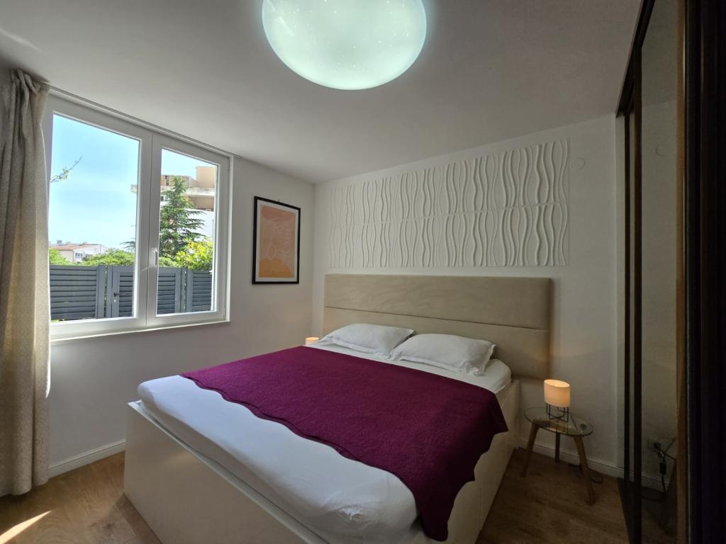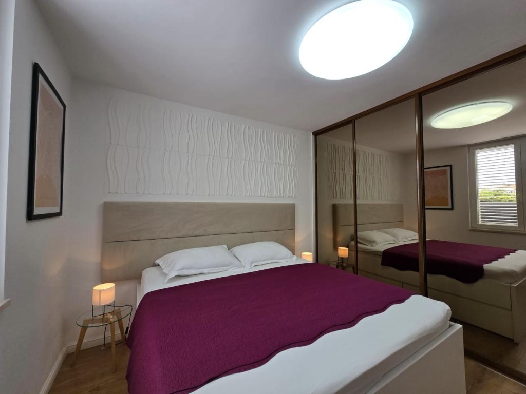 Apartman Ani nalazi se u mirnom dijelu grada udaljen od gradske rive i centralne plaže 500 metara (7-10 minuta lagane šetnje). Nalazi se u stambenoj zgradi sa odvojenim ulazom te je potpuno renoviran i novouređen. Apartmanu pripada i vrt veličine 60m2. Vrt je okružen stablima i biljem i djelomično je natkriven. Apartman ima dvije spavaće sobe. U jednoj je krevet king size veličine, a u drugoj sobi je queen size krevet. Sobe su klimatizirane i posjeduju televizor i prozor. Dnevni boravak i kuhinja čine veliki otvoreni prostor sa klima uređajem, velikim stolom za jelo, kao i velika sofa za sjedenje. Moderna kuhinja ima sve potrebne sadržaje, pećnicu, mikrovalnu pećnicu, perilicu posuđa, kuhalo za vodu, kao i hladnjak sa zamrzivačem. Kupaonica sadrži tuš kadu, wc školjku, veliko ogledalo i umivaonik, kao i prozor. Javni parking je besplatan ili uz plaćanje, ovisno o raspoloživosti. Objek ima pristup internetu. Na raspolaganju je sušilo za robu, usisivač, i pegla za robu.