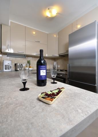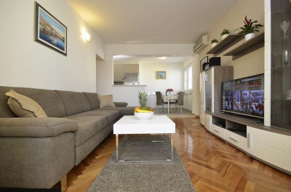 Moderan i netom renoviran apartman Anita smješten je u samom centru grada u stambenoj zgradi na 4 katu bez lifta. Apartman nudi prekrasan pogled na more i pogled na otoke Brac i Hvar. Plaža, brojni restorani, barovi, trgovine i pekara ili sve sto ćete trebati za vrijeme odmora je samo 5 minuta udaljeno od ovog apartmana. U apartmanu su dvije sobe. Jedna je s bračnim krevetom a druga s dva odvojena kreveta ali s mogucnošću da se napravi kao jedan bračni lezaj. U svakoj sobi je tv sa satelitskim programima. Ovaj apartman ima svu potrebnu opremu kao klima, internet, satelitski programi, perilica za rublje, perilica za posuđe, kuhalo za vodu i sušilo za kosu. Ispred apartmana nalazi se jedno privatno parking mjesto. Ukoliko je potrebno možemo dogovoriti i organizirati taxi prijevoz uz naknadu sa aerodroma ili negdje drugo gdje trebate. Makarska je idealno mjesto za odmor jer je okružena je prekrasnim krajolikom, planinom Biokovo, morem i brojnim plažama.