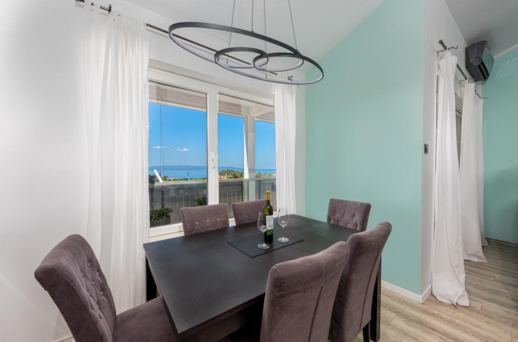 Odmor iz snova čeka vas u ovom prostranom apartmanu s 3 spavaće sobe, 1.5 kupaonica i dva balkona s prekrasnim pogledom na more. Uživajte u nezaboravnim pogledima na Jadran i Biokovo, svega 10 minuta hoda od plaže i 15 minuta od živopisnog centra Makarske. Savršena lokacija – blizu šetnica, trgovina i restorana – nudi vam idealnu kombinaciju opuštanja i avanture. Apartman se nalazi na 4. katu zgrade bez lifta, u mirnom dijelu iznad grada, gdje vas čekaju tišina i zadivljujući pogledi.