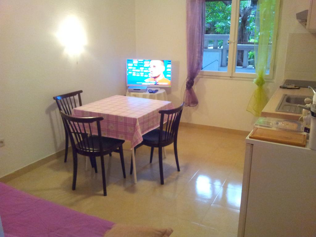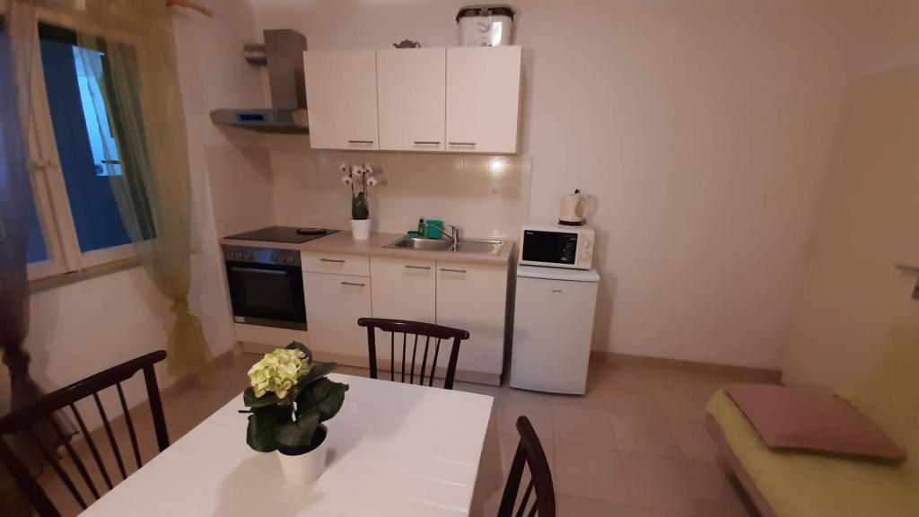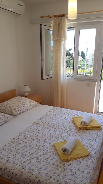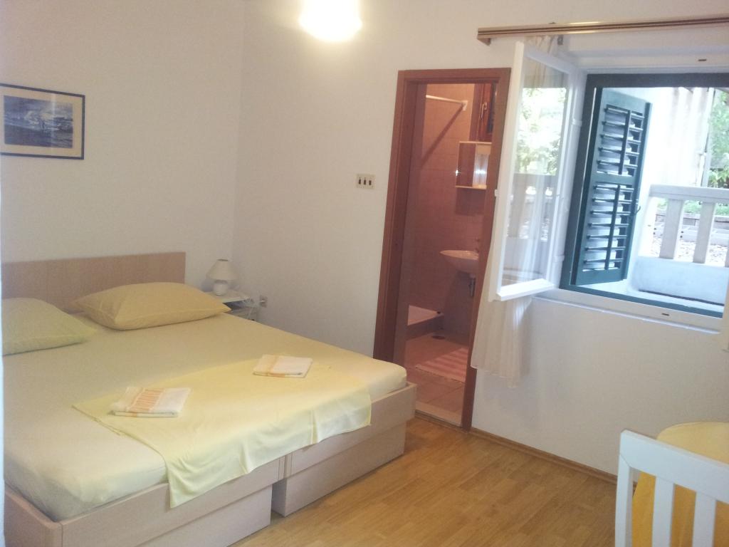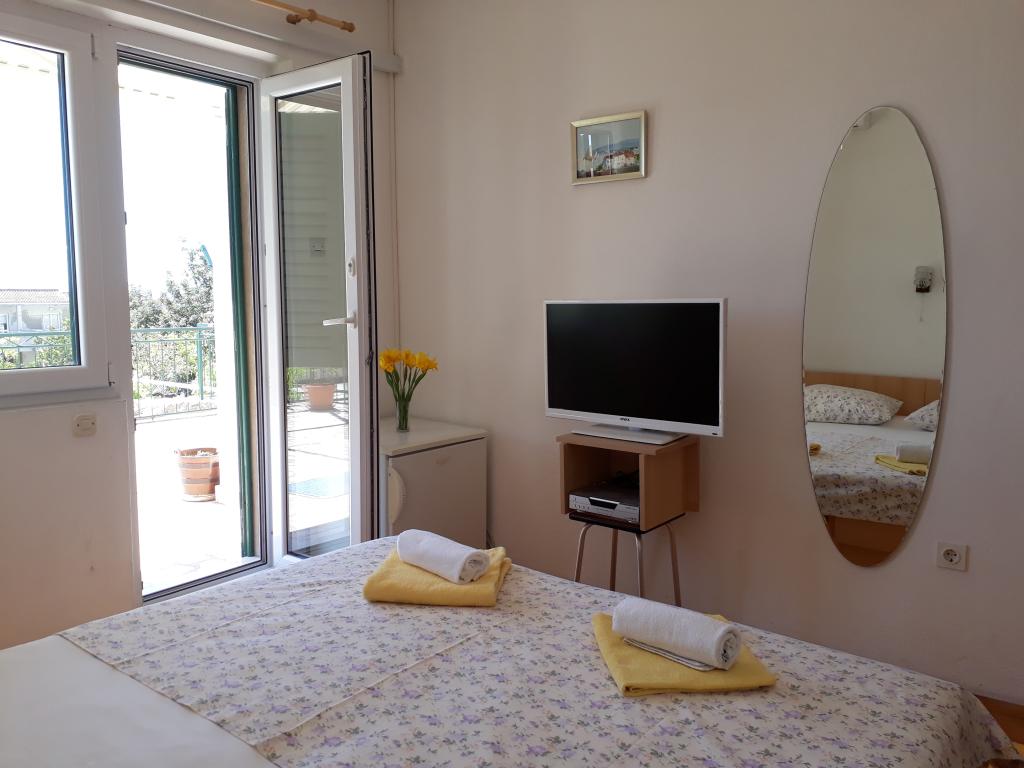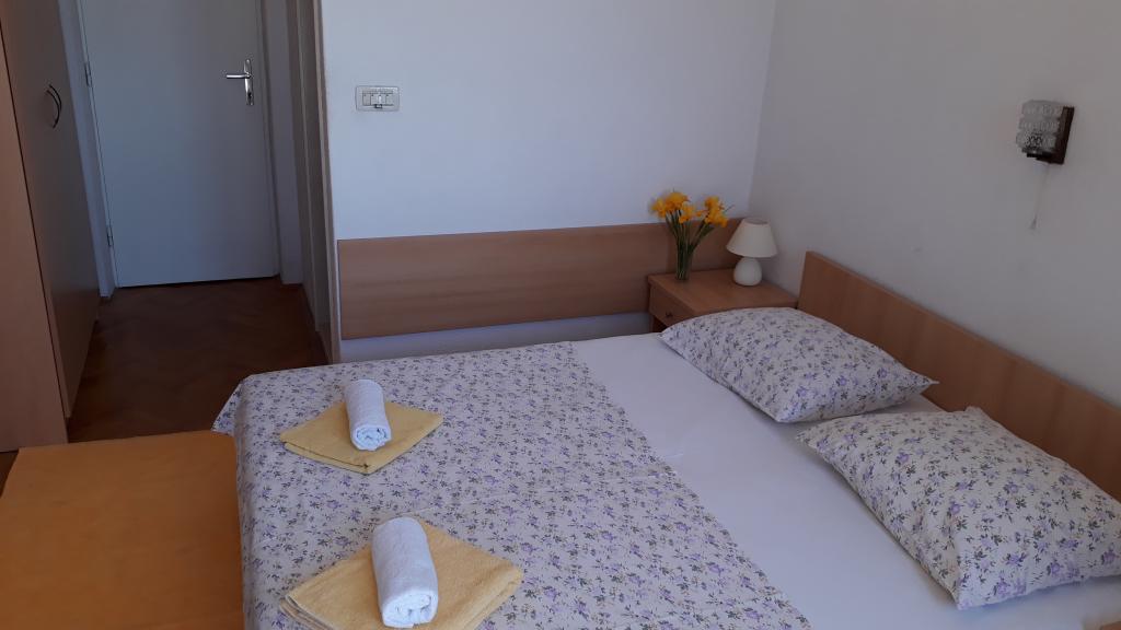 Smještaj je u kući na prvom katu s lijepom terasom sa pogledom na more. Veliki apartman sastoji se od kuhinje s blagavaonicom, hodnika, 2 spavaće sobe, svaka spavaća soba ima svoju kupaonicu. Ispred je velika terasa. 250 m od plaže. U blizini trgovine, pekarne, ljekarne, restorana, plaža. Minimalni boravak 7 noći.