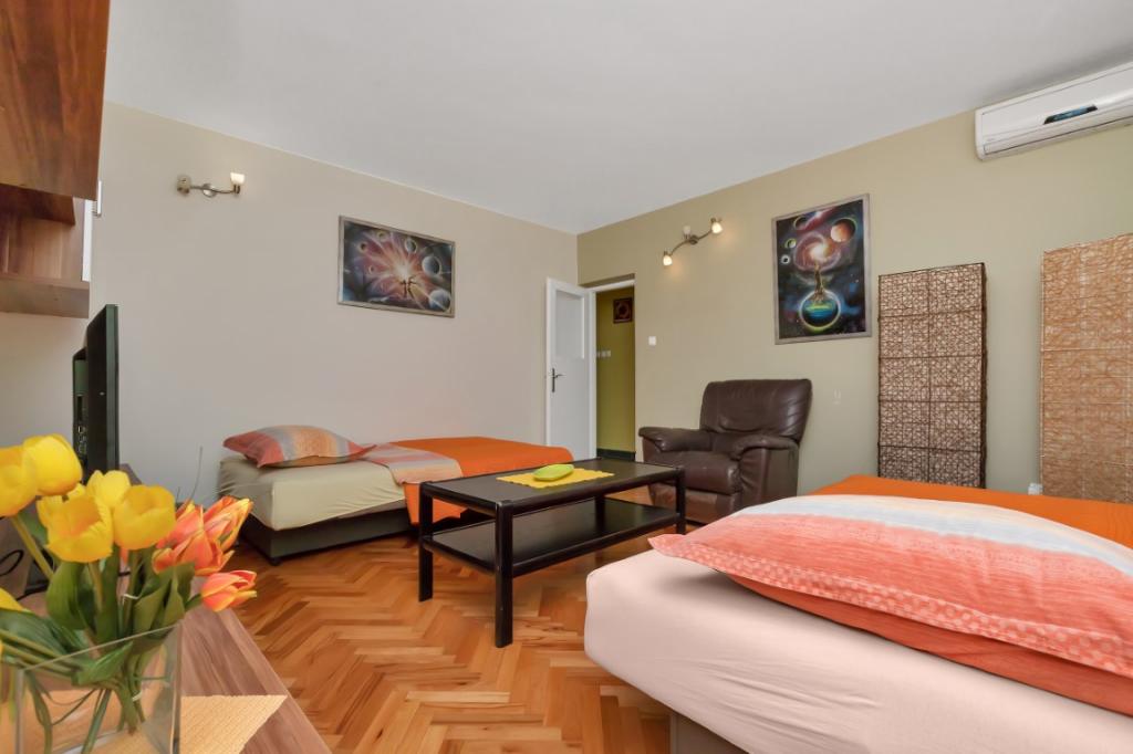 Stan se nalazi u centru Makarske, na drugom katu stambene zgrade, 4 min hoda do centra, 9 min hoda do plaze, 2 min hoda do mora, sa internetom, klimom, tv, satelitom, mikrovalnom pečnicom, hladnjakom, mašinom za rublje, mašinom za suđe, glačalom, osiguranim parking mjestom....