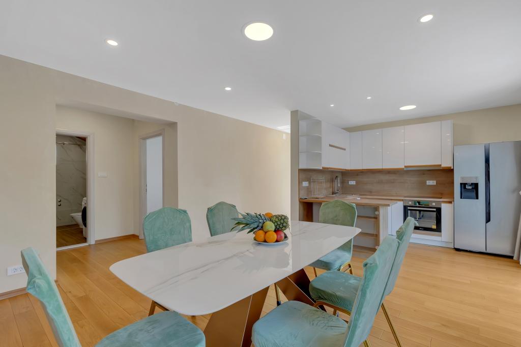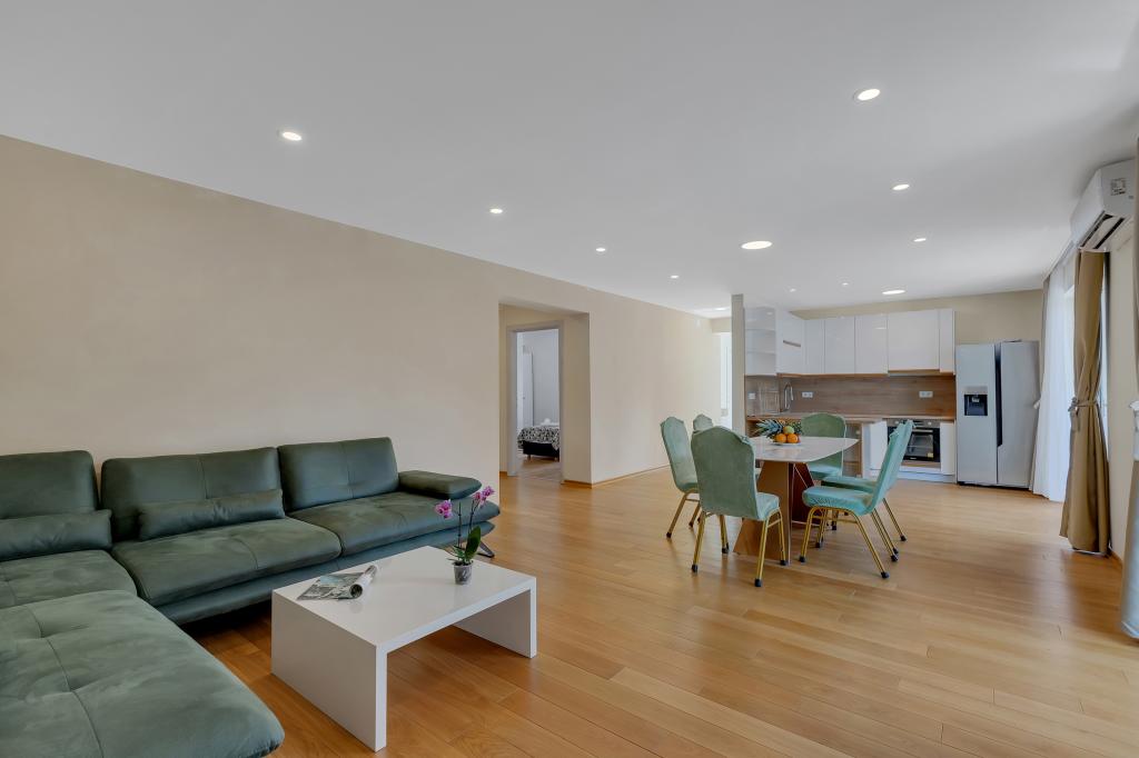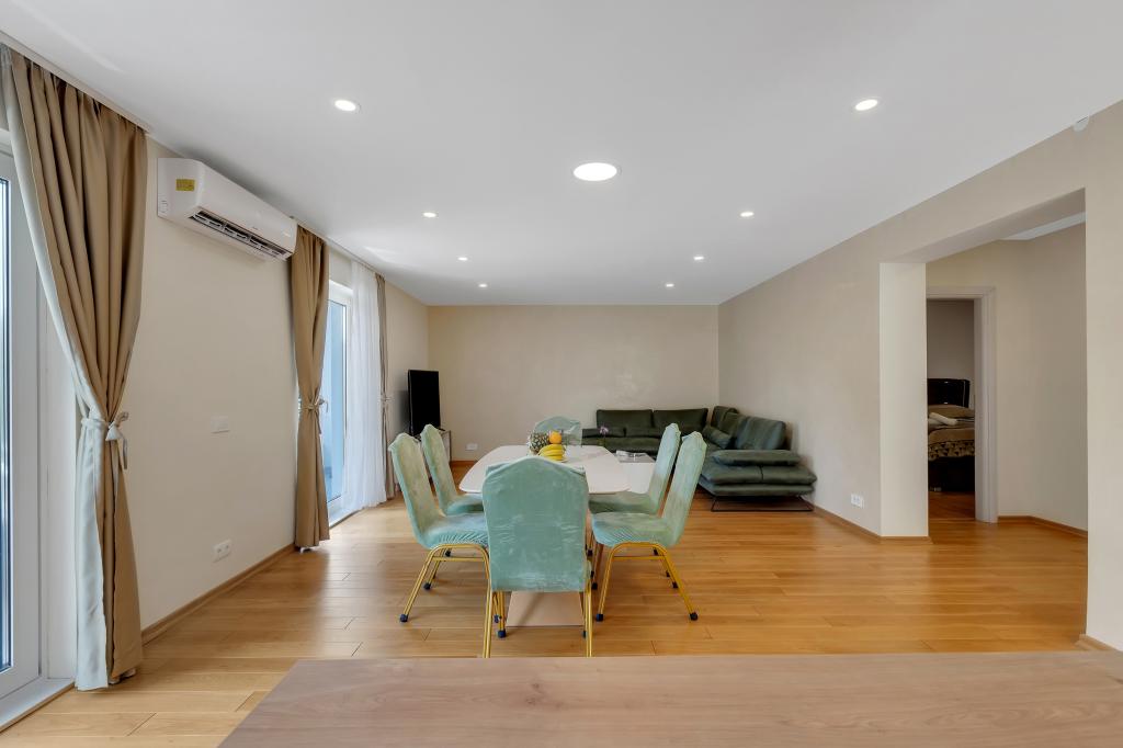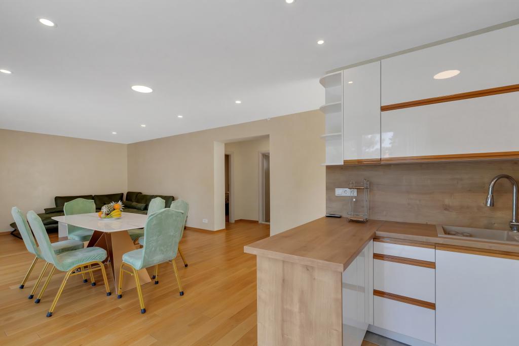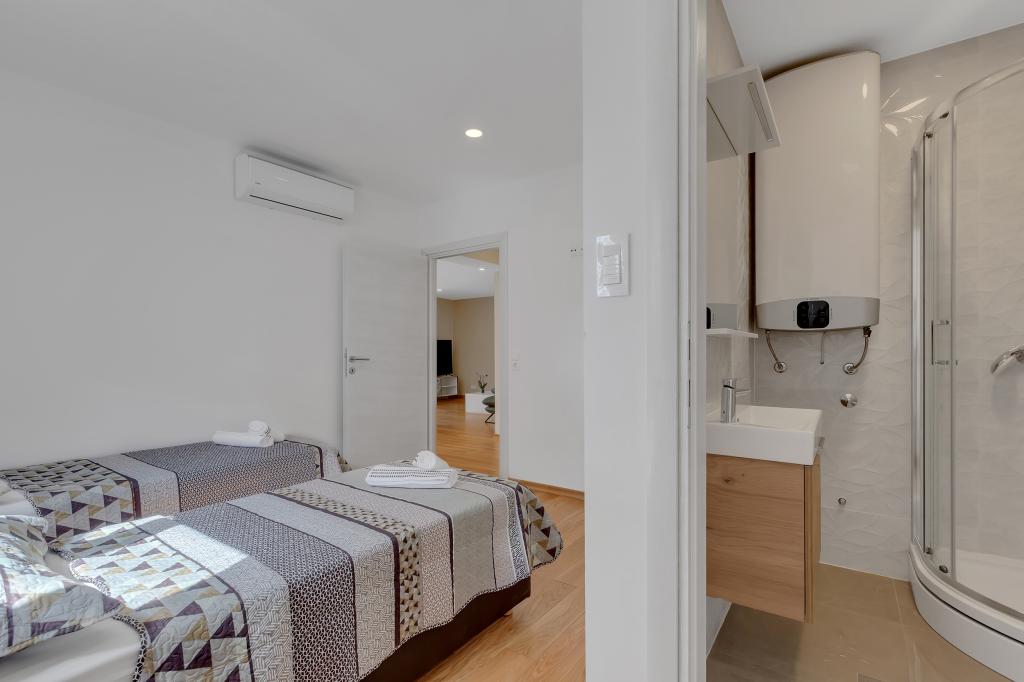 Potpuno opremljeni apartman/stan s dvije sobe ( bracna , krevet 180x200 , i druga s 2x kreveta odvojena koja se po zelji mogu spojiti ) , 2 kupatila , velikim dnevnim boravkom s kuhinjom ( zajedno 40m2 ) Stan ima sve potrebno za duzi i komotni smjestaj i nalazi se u centru makarske