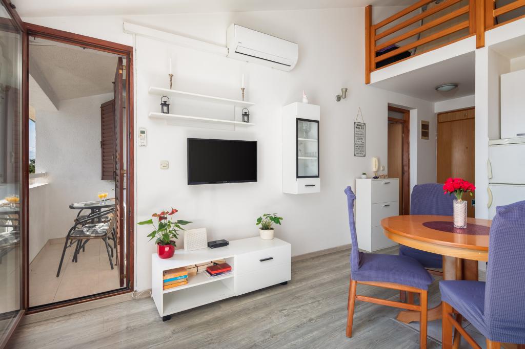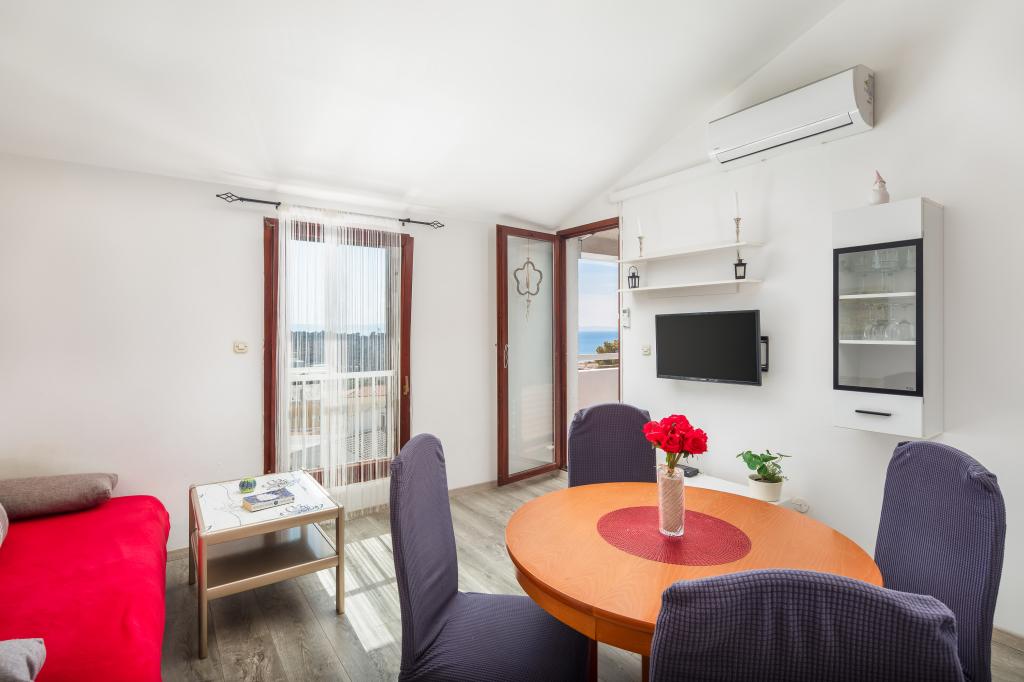 Ovaj apartman ima 1 spavaću sobu, dnevni boravak s kaučem na rasklapanje, kuhinjom i balkonom s pogledom na more. Ispred zgrade se nalazi besplatni parking.
