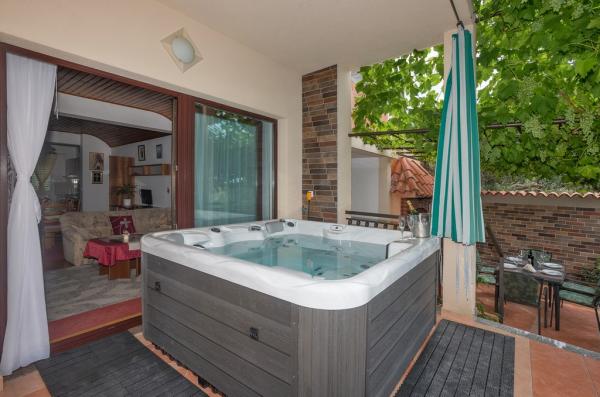 Apartman se nalazi u Velikom Brdu, 1, 5 km iznad grada Makarske. Apartman je površine 120 četvornih metara s pogledom na more. Apartman se sastoji od dnevnog boravka, blagovaonice, kuhinje, ostave, 3 spavaće sobe i 3 kupatila. Na balkonu se nalazi jacuzzi, a na terasi roštilj i prostor za sjedenje. Parking za dva auta je uključen u cijenu. U garaži se nalazi stolni tenis, pikado i boksačka vreća s 2 para rukavica. Apartman ima Wi-Fi. U blagovaonici se nalazi računalo koje gosti mogu koristiti.