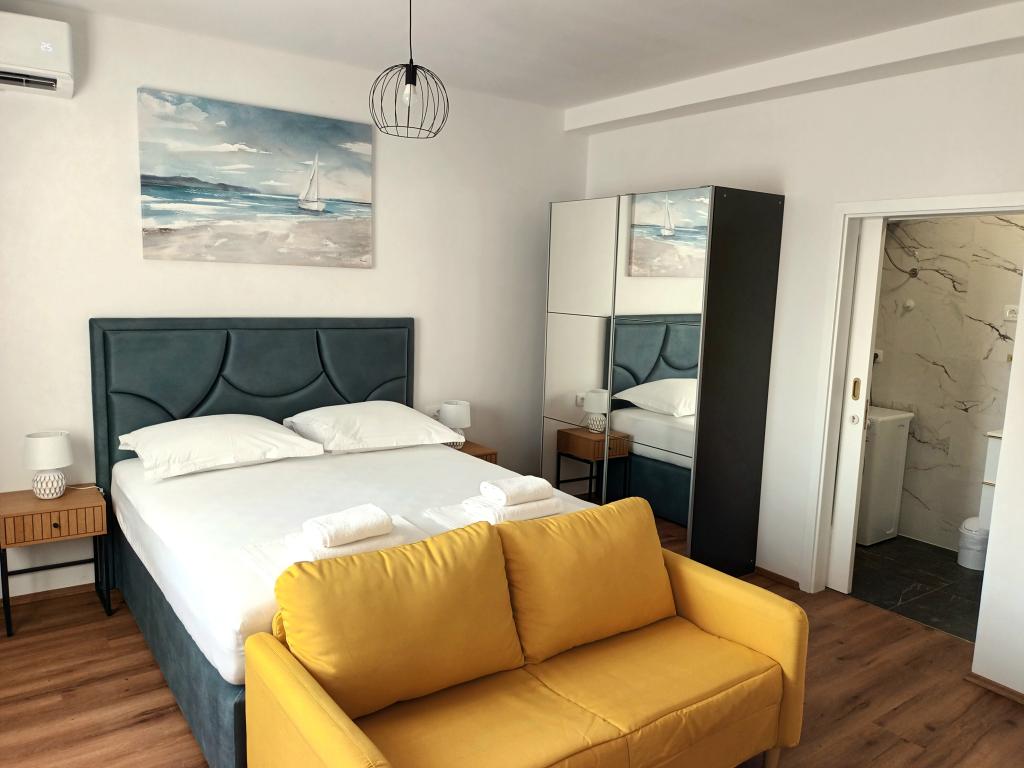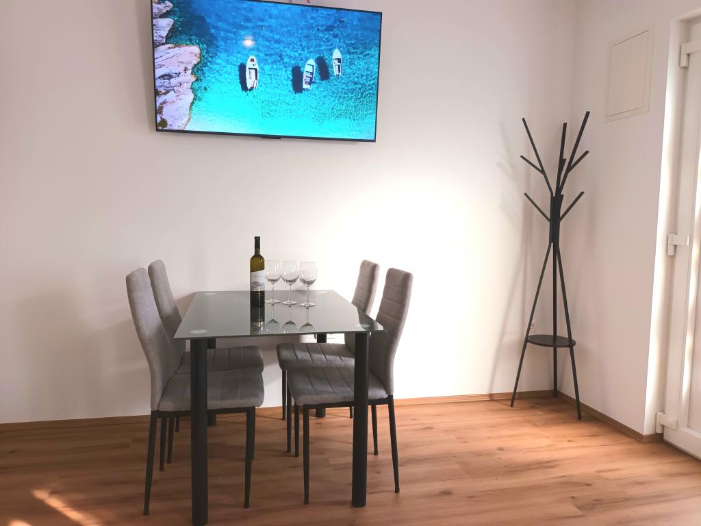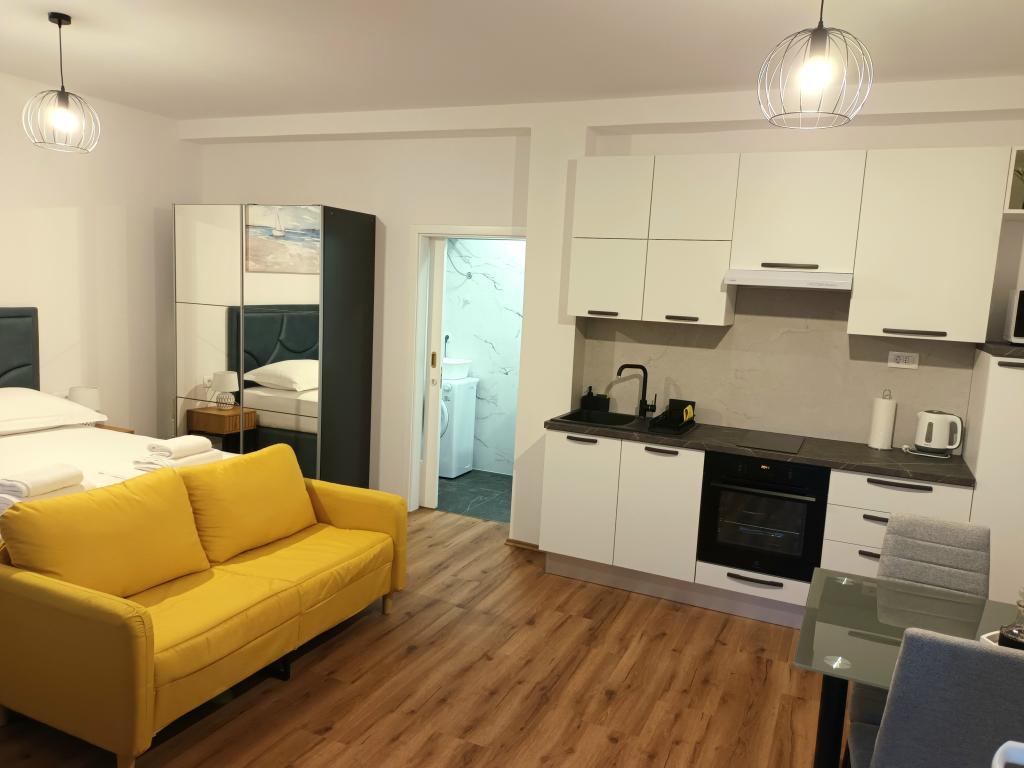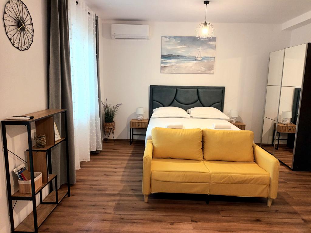 Novo opremljeni, moderni i klimatizirani apartman u neposrednom centru grada, a opet u mirnom kvartu. Ovaj apartman sadrži spavaću sobu, dnevni dio, potpuno opremljenu kuhinju s blagovaonom te kupaonicu s tušem i perilicom rublja. Gostima su na raspolaganju ručnici i posteljina. Gosti također mogu uživati u dvorištu ispred samog apartmana, a na raspolaganju je i besplatni parking u sklopu objekta.