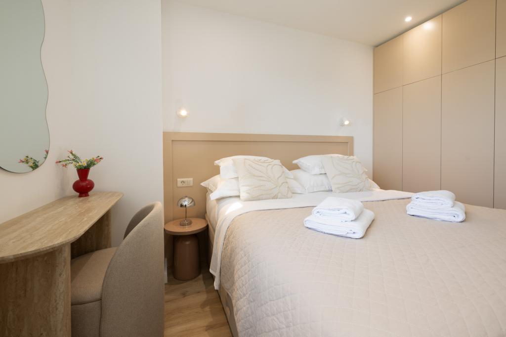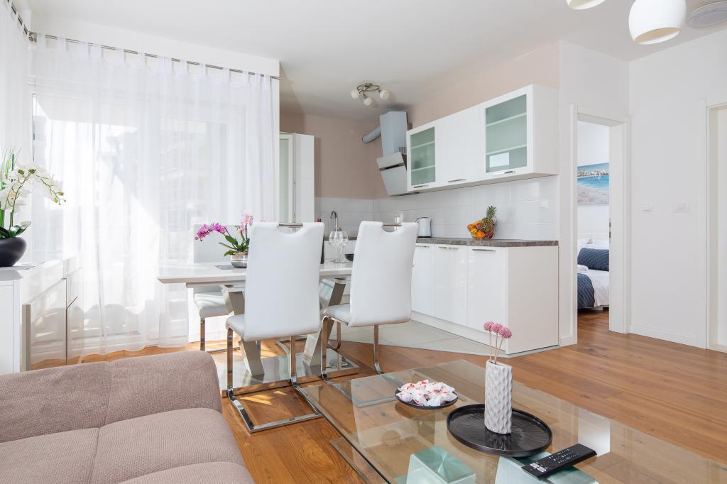 Apartman Lana se nalazi 800m od plaže i mora, centar je također udaljen 800m. Ovaj apartman nudi odmor i opuštanje, baš zato što se nalazi dalje od buke i gužve. Sastoji se od 1 spavaće sobe, moderne kuhinje, balkona s djelomičnim pogledom na more. U dnevnom boravku se nalazi kauč na rasklapanje na kojemu može spavati 2 osobe. Kupaonica je moderno opremljena s tuš kabinom i perilicom rublja. Uživajte u apartmanu Lana i rezervirajte odmah!