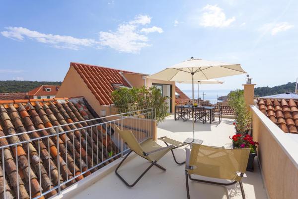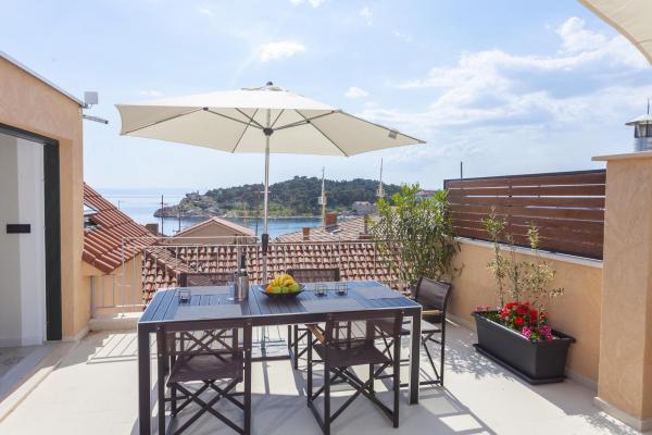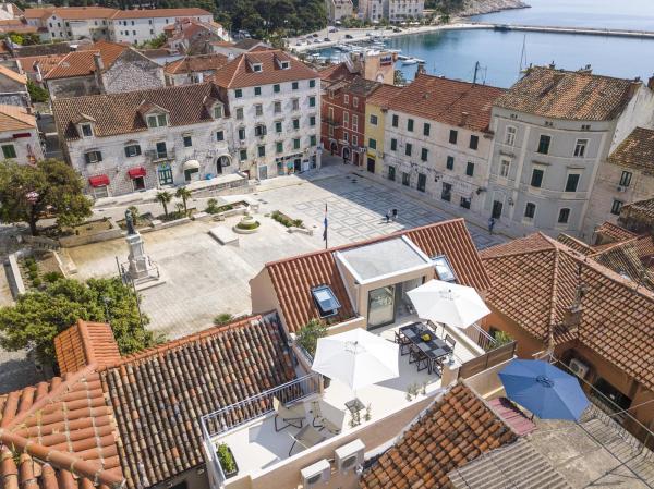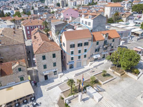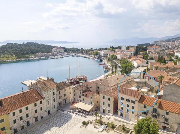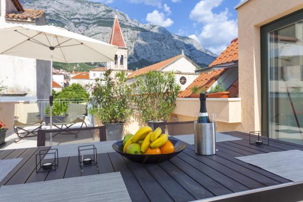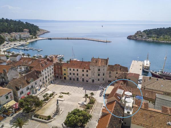 Novi, moderno i luksuzno uređen dvoetažni apartman u samom centru Makarske. Smješten je na glavnom gradskom trgu na samo 50m od gradske rive, najboljih gradskih restorana, vinskih barova te Katedrale sv. Marka. Apartman posjeduje prekrasnu terasu s koje se pruza pogled na gradsku luku. Apartman je u potpunosti klimatiziran, dostupan je bežični internet u svim prostorijama a svaka soba kao i dnevni boravak je opremljena LCD televizorom. Kuhinja je u potpunosti opremljena svim aparatima uključujući perlicu posuđa, mikrovalnu pećnicu, pećnicu, aparat za kavu itd. U dvije kupaonice su dostupni ručnici te toaletna kozmetika. Privatni parking je udaljen cca 100 m od apartmana i naplaćuje se 16€/dan.
