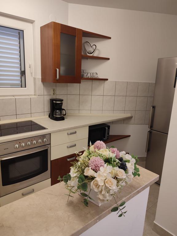 Kompletno i suvremeno opremljen apartman u Makarskoj,na prvom katu stambene zgrade,100 metara od mora i pet minuta hoda kroz borovu šumu do poznate plaže Biloševac...