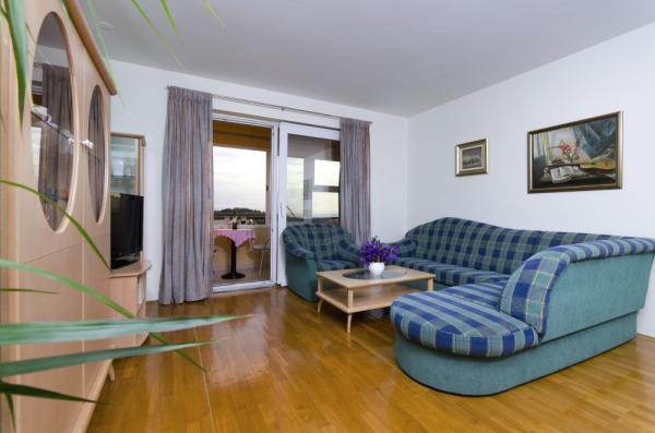 Komforan apartman u centru Makarske. 3 minute udaljen od rive (centar grada) i 5 minuta udaljen od šljunčane plaže. Sadrži dvije spavaće sobe s bračnim krevetima, a u dnevnom boravku je sofa za dvoje. Apartman je dobro opremljen; klima, tv-sat, besplatni wi-fi, perilica posuđa, perilica rublja, mikrovalna peć, kuhalo za vodu... Uz objekat je besplatan parking.