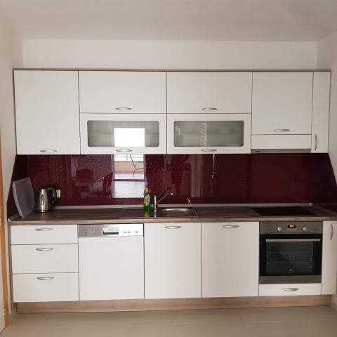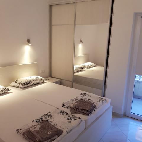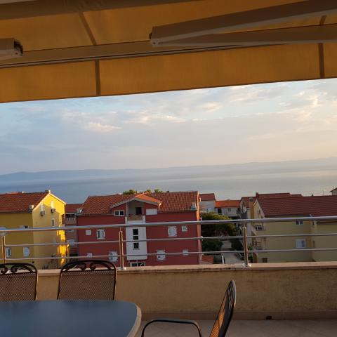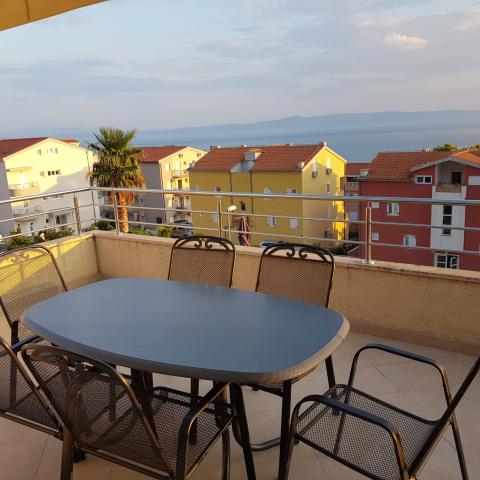 Kompletno i suvremeno opremljen apartman u zapadnom dijelu Makarske. Sa velike terase se pruža direktni pogled na more. Do plaže ima 10 minuta, a do centra 20 minuta hoda.
