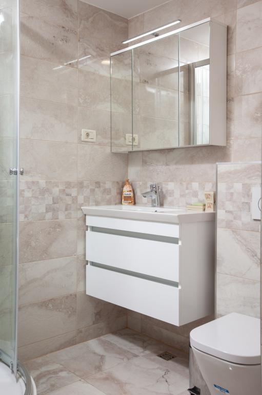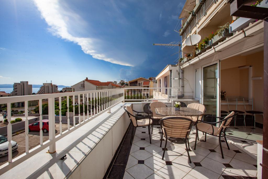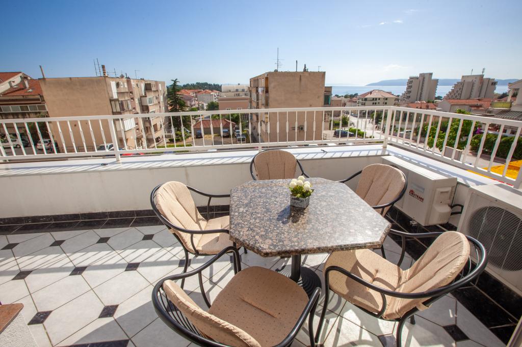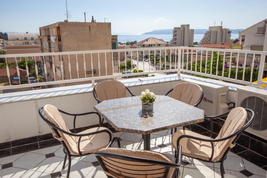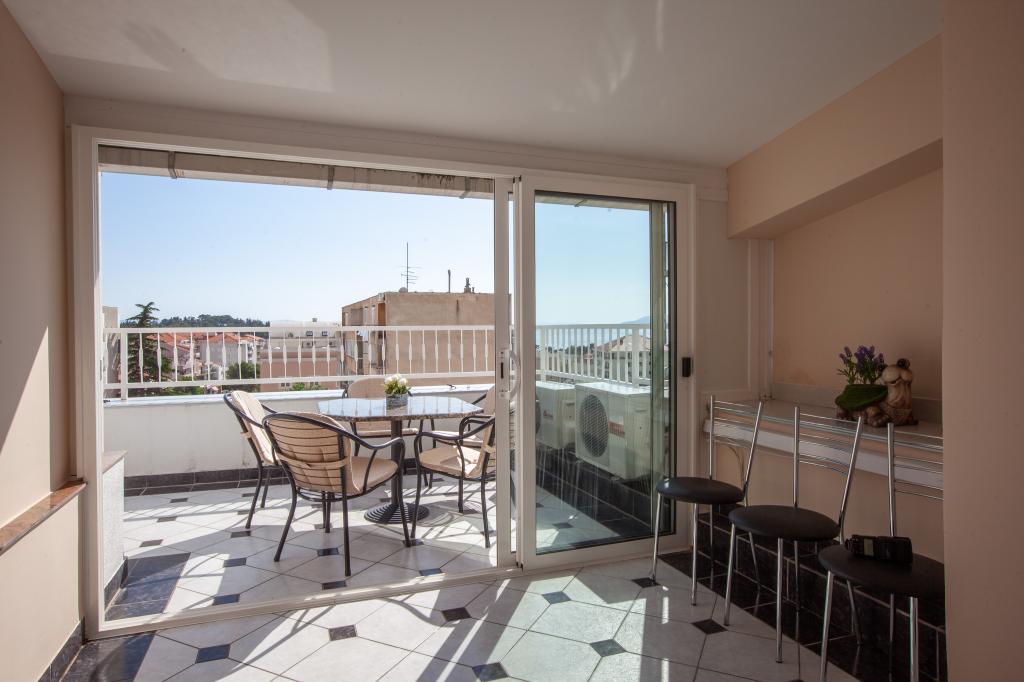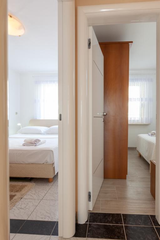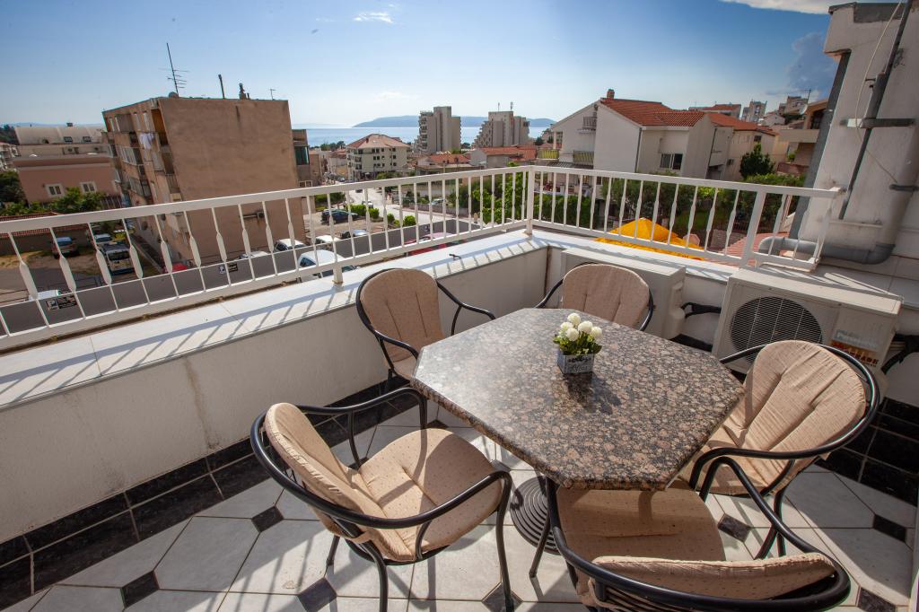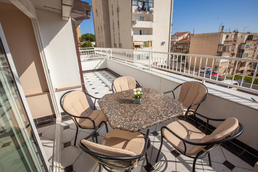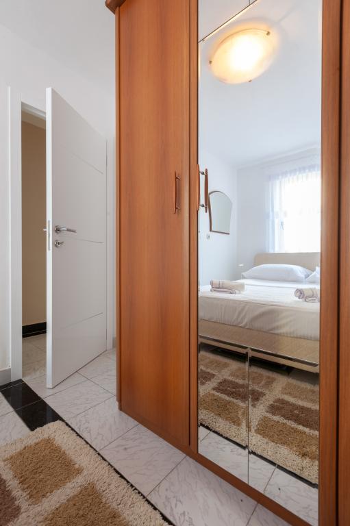 Objekt se nalazi 15 min hoda od centra grada. U blizini se nalaze restorani, caffe barovi i trgovine. Ovaj dvosoban apartman je prikladan za 8 osoba. Apartman ima pogled na more i grad. Besplatan parking se nalazi u sklopu objekta.