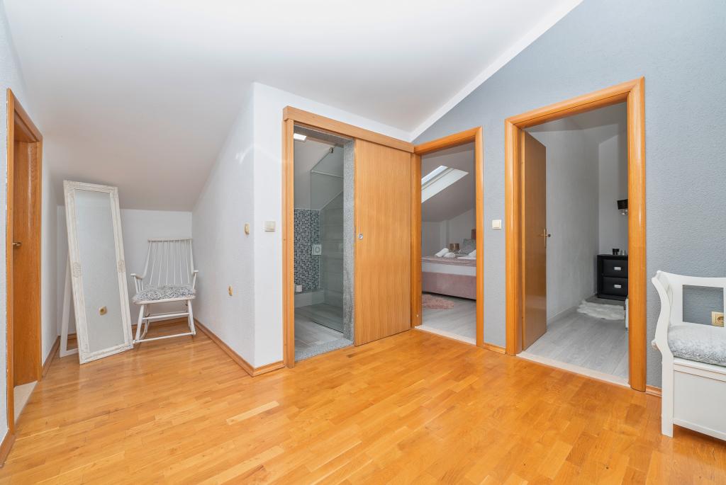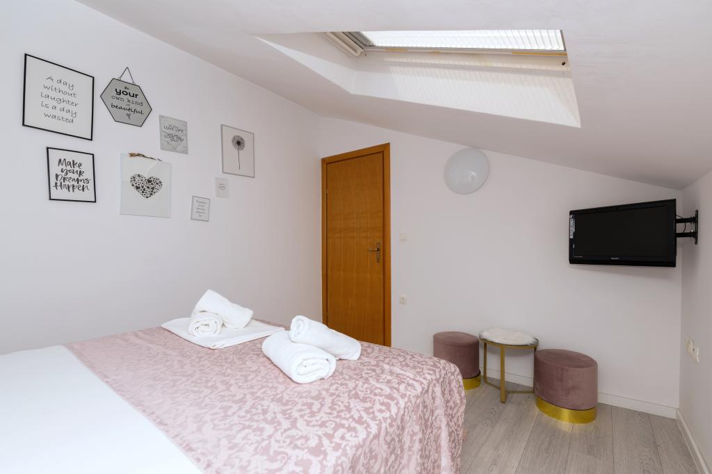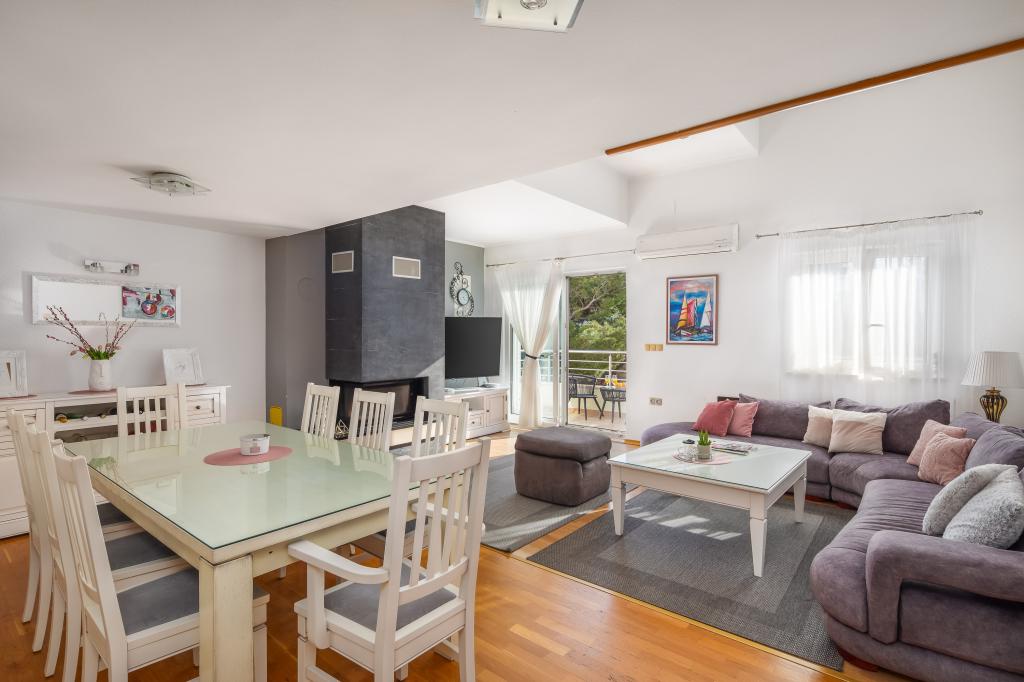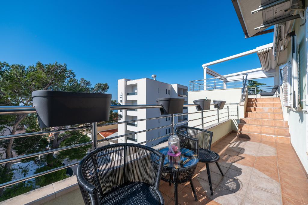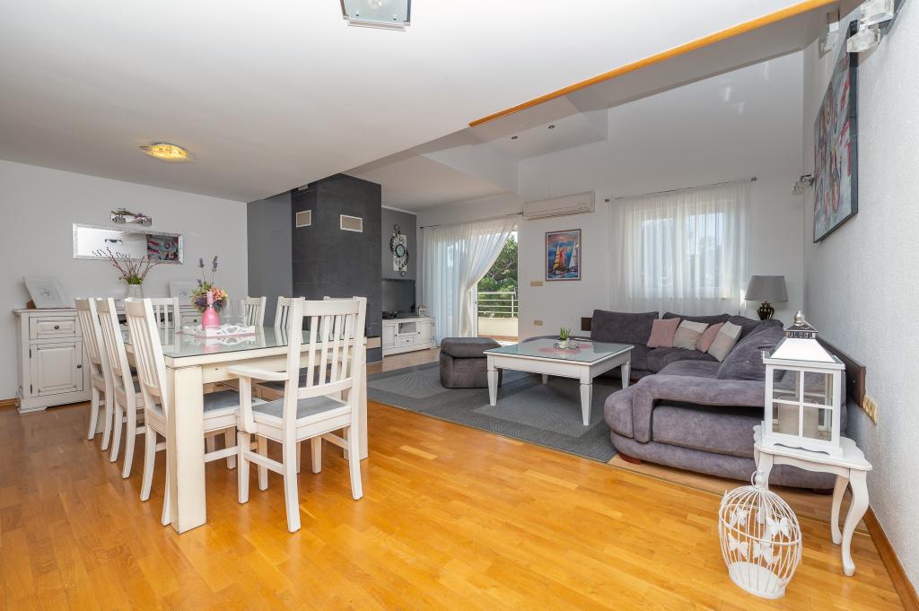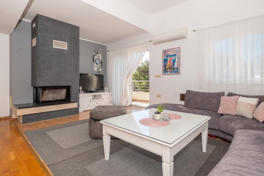 Dobrodošli u Villu Danijelu, S 4 spavaće sobe, 2 kupaonice i velikim balkonom, prostor je idealan za obitelji. Uživajte u pogodnostima potpuno opremljene kuhinje i udobnosti modernih sadržaja. Ispred objekta se nalaze 2 besplatna parking mjesta za korištenje. Rezervirajte odmah za opuštajući odmor uz obalu!
