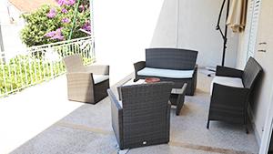 Apartman se nalazi u širem centru grada Makarske udaljen 5 minuta hoda od plaže i samog centra. Smješten je na prvom katu obiteljske kuće sa velikom terasom koja pruža pogled na more. Sastoji se od tri spavaće sobe, dvije kupaone, kuhinje, blagovaonice i dnevnog boravka. Posjeduje parking mjesto u dvorištu ispred objekta te privatnu garažu udaljenu 50m.