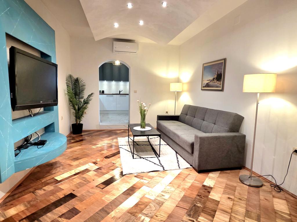 Apartman Robert nalazi se 400 m poviše starog djela grada. Površine 120 m2 sastoji se od dvije spavaće sobe, dva kupatila, dnevnog boravka i kuhinje. Ispred apartmana se nalazi jacuzzi , Tv ,stol sa klupama grill ,bazen sa ležaljkama i tušem te privatni parking za auto. Dobrodošli !