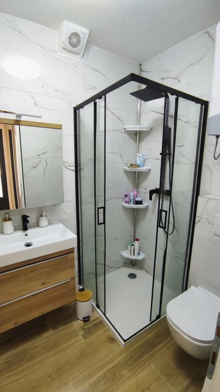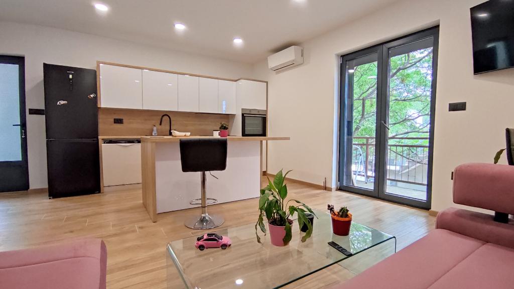 Novi, suvremeno i kompletno opremljeni studio apartman za 2 osobe smješten je unutar obiteljske kuće s privatnim ulazom. Nalazi se u mirnom okruženju i daleko od gradske buke, iako vas samo 5 minuta hoda dijeli od plaže Osejava i samog centra Makarske, dok se u neposrednoj blizini nalazi trgovački centar, gradski sportski centar, bolnica i tržnica. Apartman pruža sve što vam je potrebno za udoban boravak; očekuje vas moderna oprema koja uključuje Wi-Fi, smart TV s Netflixom, klima uređaj, kompletno opremljenu kuhinju i kupaonicu. Besplatno parkirno mjesto nalazi se odmah pred ulazom. Idealno za sve koji žele uživati u miru i privatnosti, a istovremeno biti blizu svih sadržaja koje Makarska nudi.