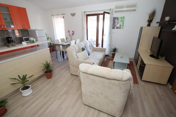 apartman je suvremeno ureden, osiguran parking, wi-fi. Nalazi se 100m od glavnog trga u samoj blizini ima trgovina, restoran udaljen 80m ljekarana takoder. Objekt se pogodan za obitelj s djecom jer se nalazi u tihoj i mirnoj ulici spogledom na obalu.