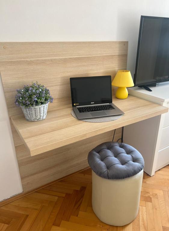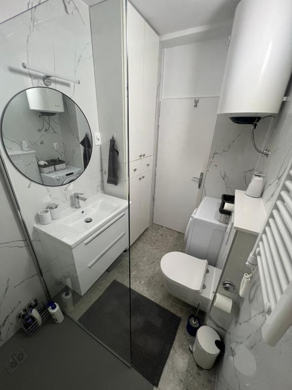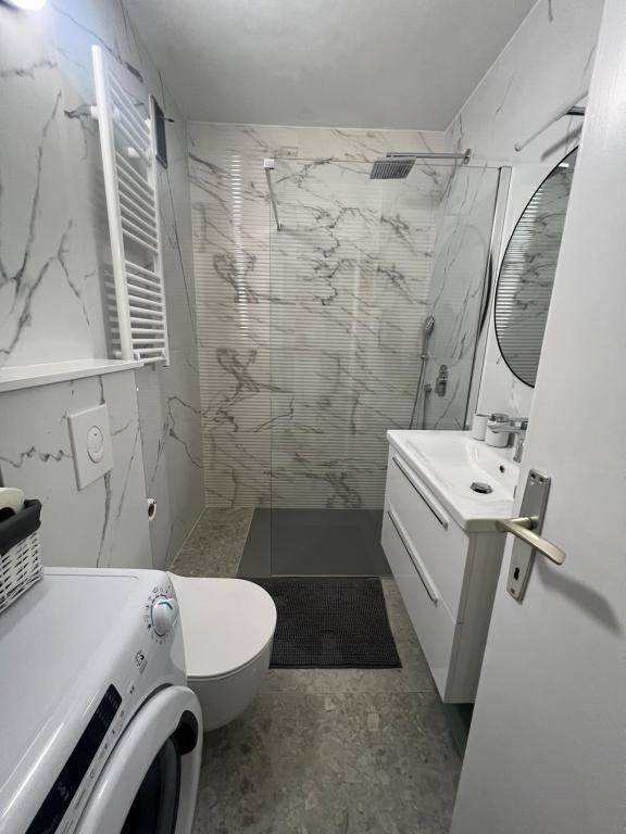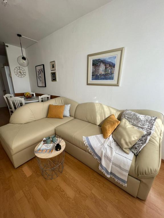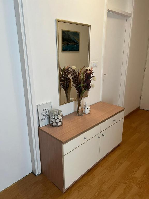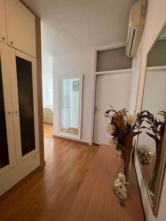 Dvosoban stan u stambenoj zgradi nadomak centra grada i plaža, u mirnom obiteljskom predjelu Makarske, udaljen od glavnih prometnica. Do samog centra grada i naših predivnih plaža smo udaljeni 5 minuta hoda. U okolini zgrade se nalazi mesnica, kafić, restoran i supermarket. Za sva Vaša pitanja smo Vam na raspolaganju. DOBRO NAM DOŠLI :) P.S. u ponudi imamo putni dječji krevetić