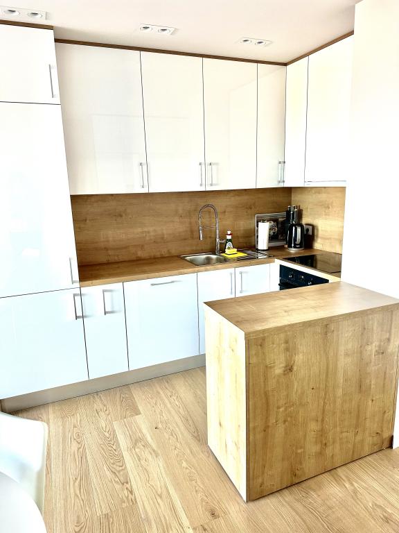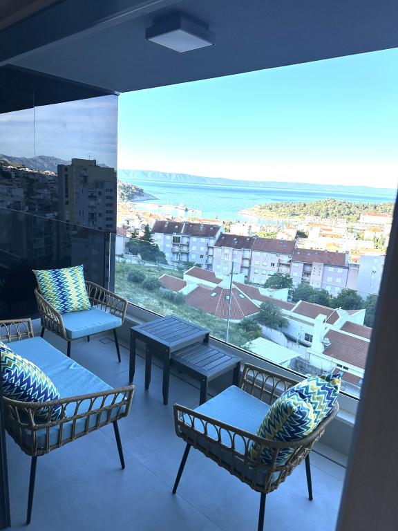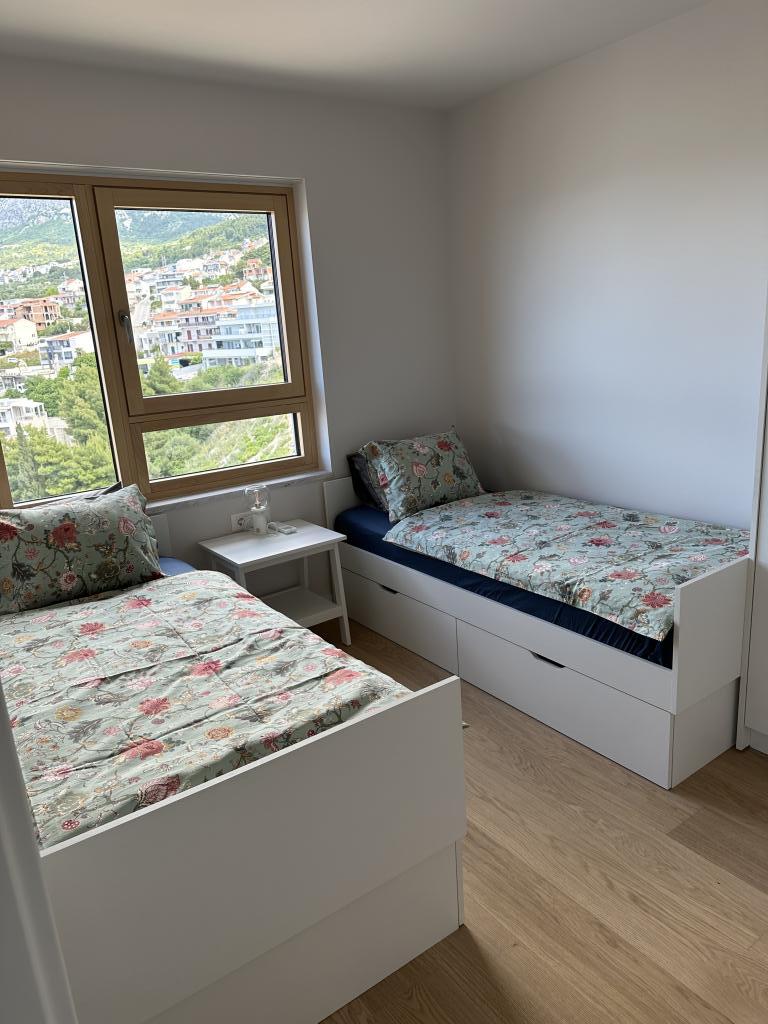 Novo uredjen apartman,u samom centru grada Makarske. Zgrada gradjena po najvisim standardima,luksuzno opremljena kao I sam stan! Vlastit parking na raspolaganju,Vanjski parking br 6. za auta na lpg pogon te dva parkirna mjesta na etazi -2; No.1 I 2. Stan je smjesten na 3.katu. Orjentiran je jug-zapad. Sastoji se od kuhinje s trpezarijom I dnevnim boravkom u open space modelu. Kuhinja je kompletno opremljena kako bi u njoj mogli I za vrijeme svog godisnjeg odmora uzivat u spremanju najdrazih jela. Prostrana kupaonica s walk in tusem,te perilica rublja. Dvije spavace sobe! U glavnoj spavaonici je krevet 160/200 dok su u drugoj dva kreveta 90/200. Apartman je kompletno opremljen s posteljinom,rucnicima,kuhinjskim krpama i papirnatim ubrusima. Tekuci sapun i deterdjent za pranje rublja,wc papir te deterdjent za sude i tablete za perilicu posudja. Prekrasan pogled s natkrivene terase pruza se na grad Makarsku te otoke Brać I Hvar