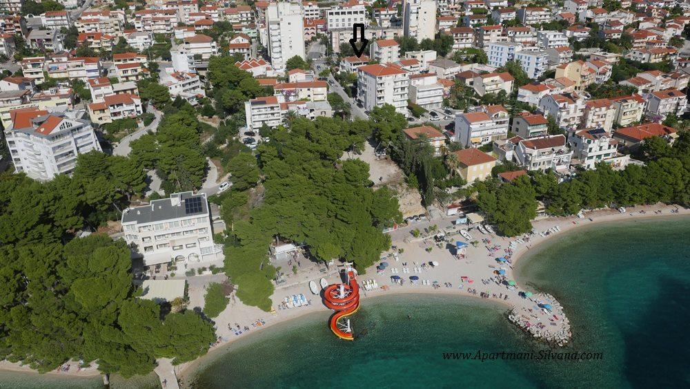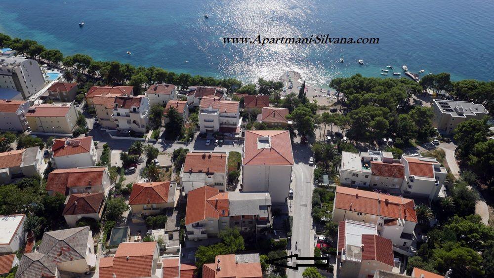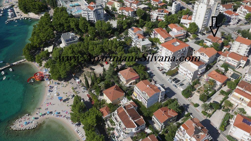Apartmani «Silvana», (četiri apartmana i studio) nalaze se u centru Makarske, svega 80 metara od gradske, pješčane plaže na koju je pristup slobodan. Svi naši apartmani opremljeni su kuhinjom, blagovaonicom, WiFi internetom, SAT TV i balkonom, odnosno terasom, dvorištem pod krošnjama dalmatinskih stabala i uz miris mediteranskog bilja. Svi apartmani su opremljeni centralnim grijanjem i klima uređajem. Pogodni su i za zimski turizam. Voda u kući na svim slavinama je pitka. Svi apartmani imaju privatni parking. App 4+2, App 4+1, 2 x App 2+2 i Studio su kompletno renovirani i namješteni sa novom opremom.