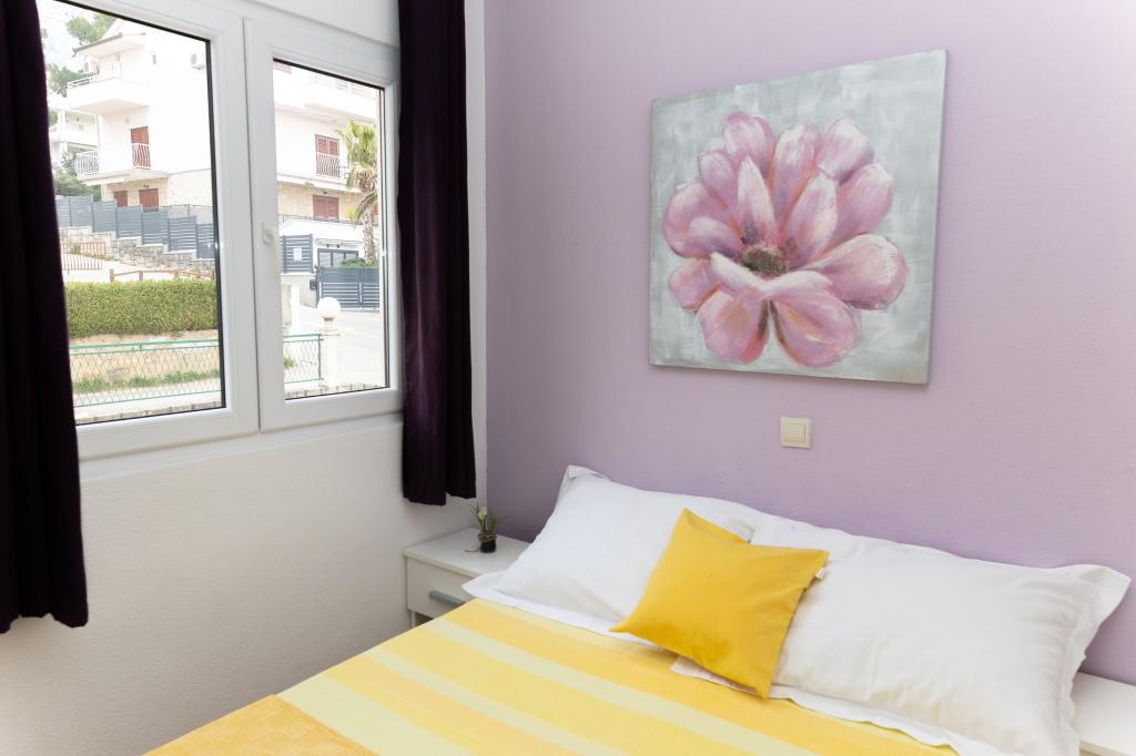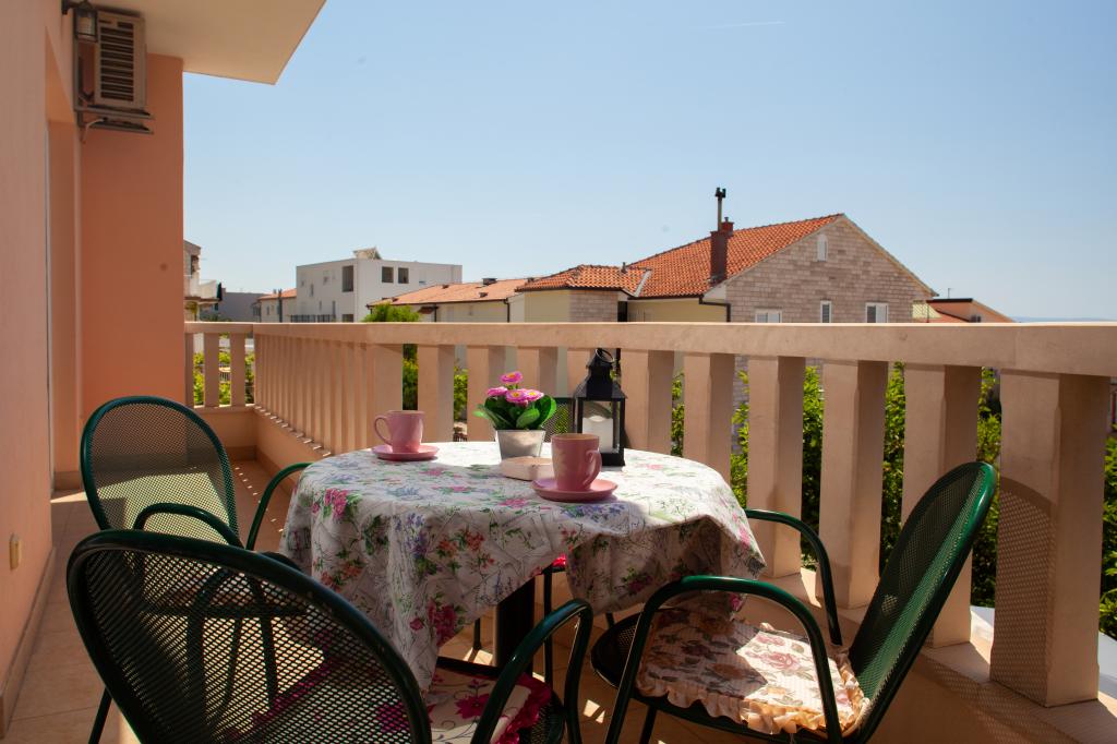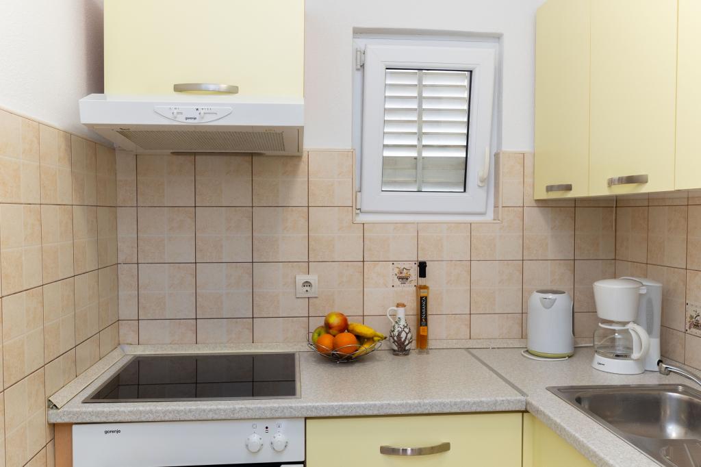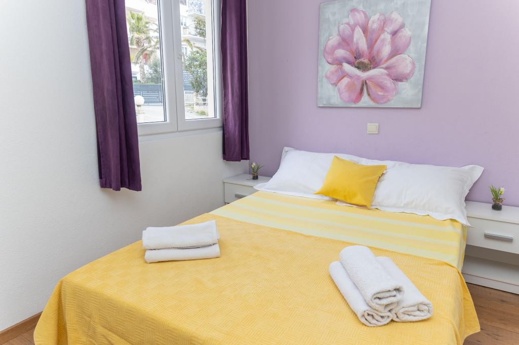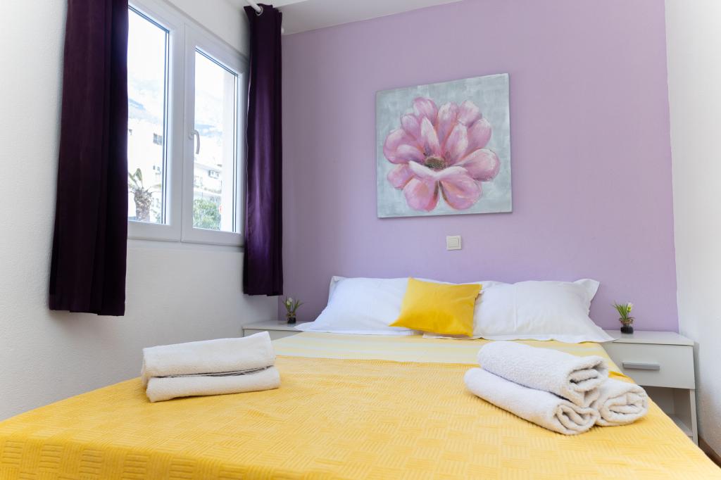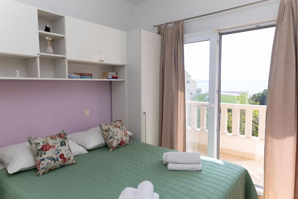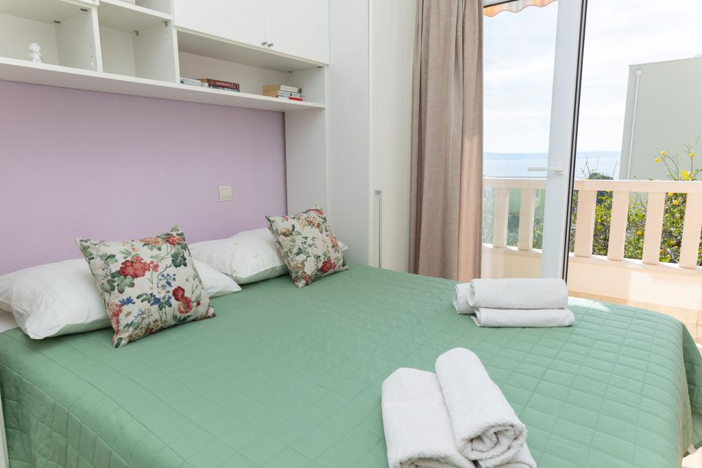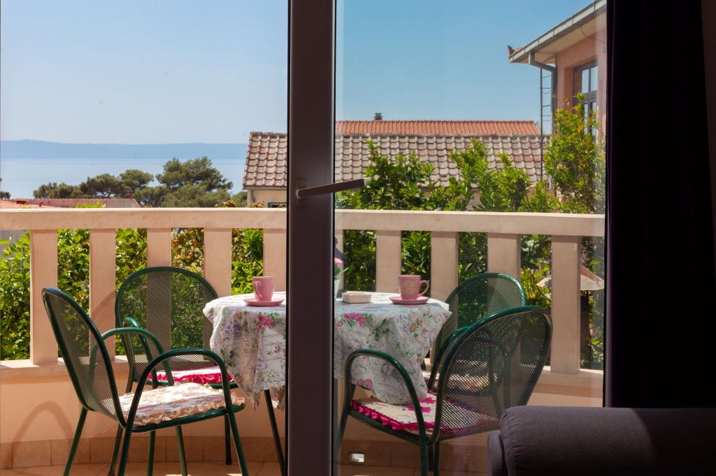 Apartmani se nalaze na 1. katu obiteljske kuće u jednosmjernoj ulici na zapadnom dijelu grada Makarske. Do šljunčane plaže Ratac se dolazi za 5 minuta hoda, a do centra grada za 15-tak minuta hoda šetnicom uz more. Apartmani se sastoje od dnevnog boravka s kuhinjom i blagovaonicom, 2 spavaće sobe (s bračnim krevetima) te kupaonicom s tuš-kadom. U dobro opremljenoj kuhinji gosti će pronaći ploču za kuhanje, hladnjak, posuđe i pećnicu. U dvorištu objekta se nalazi veliki roštilj koji mogu koristiti naši gosti. Apartmani imaju balkone s pogledom na more, zvučno izolirane zidove i TV ravnog ekrana s kabelskim programima.