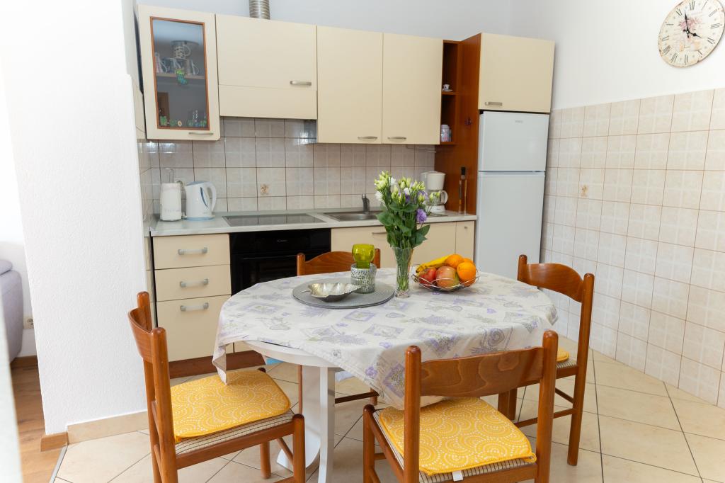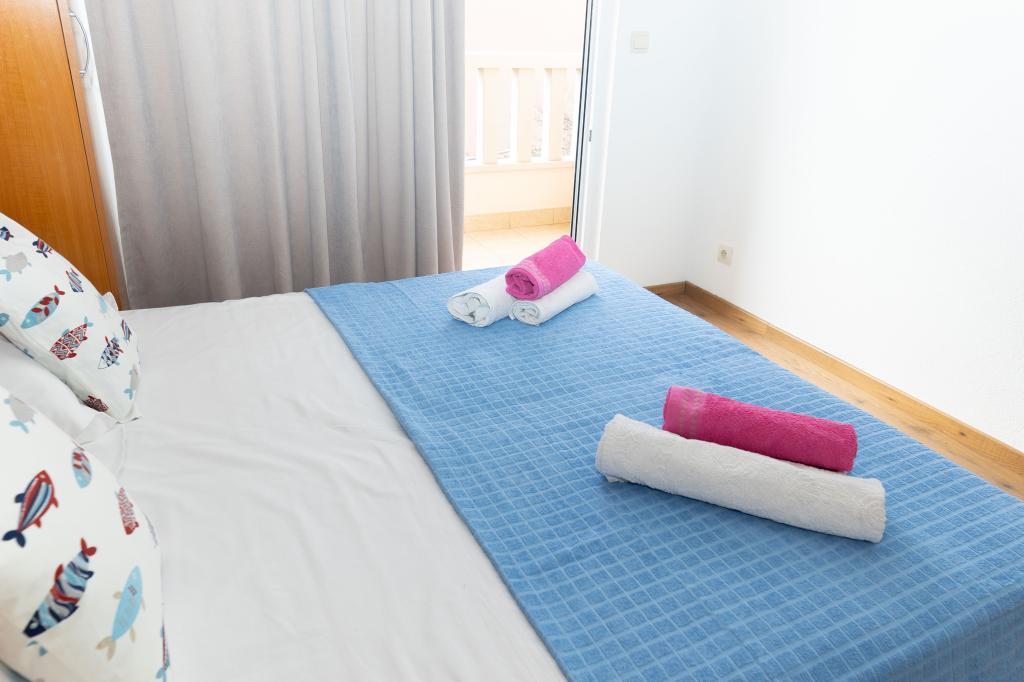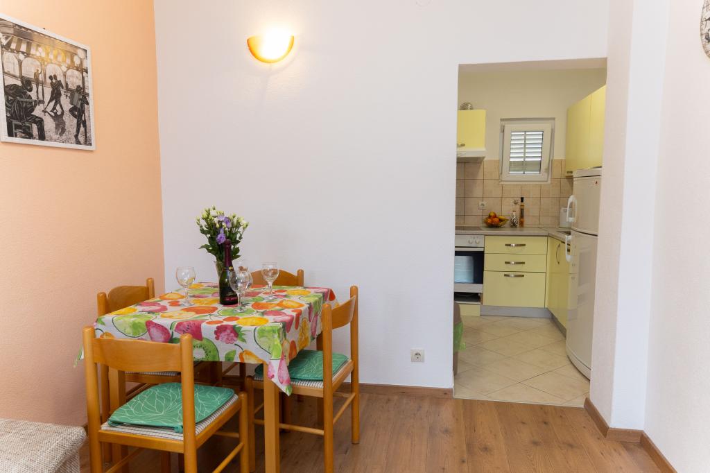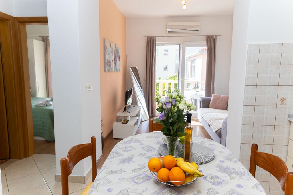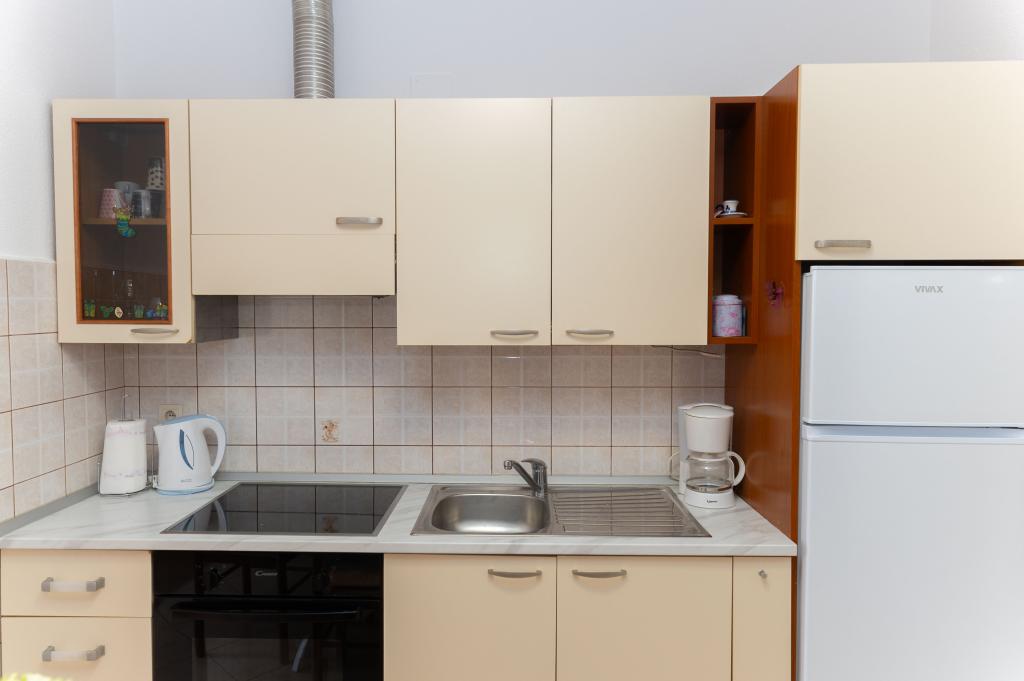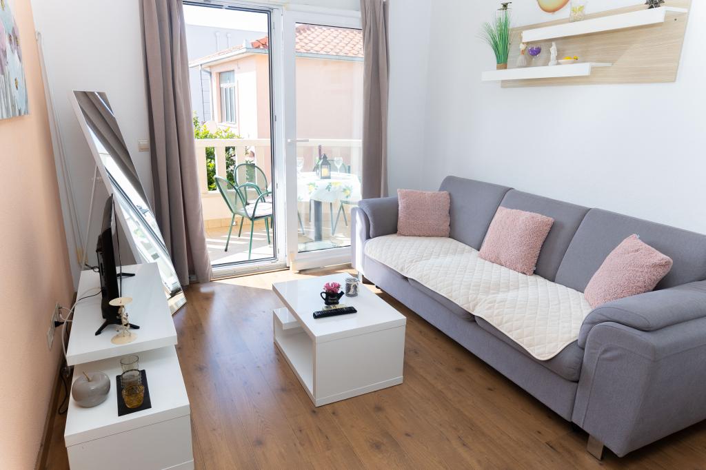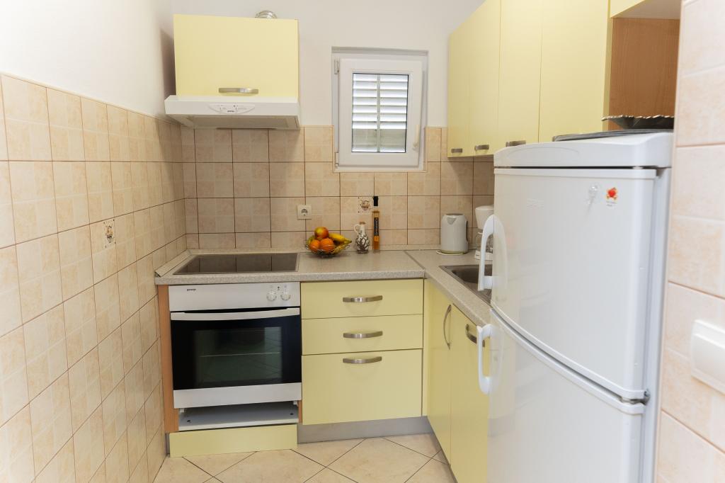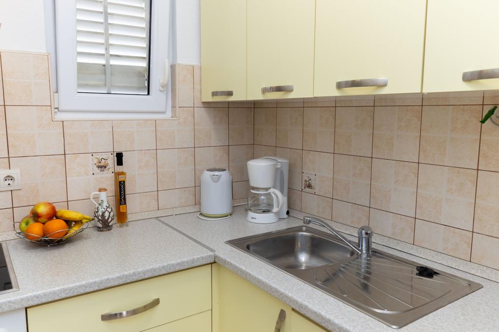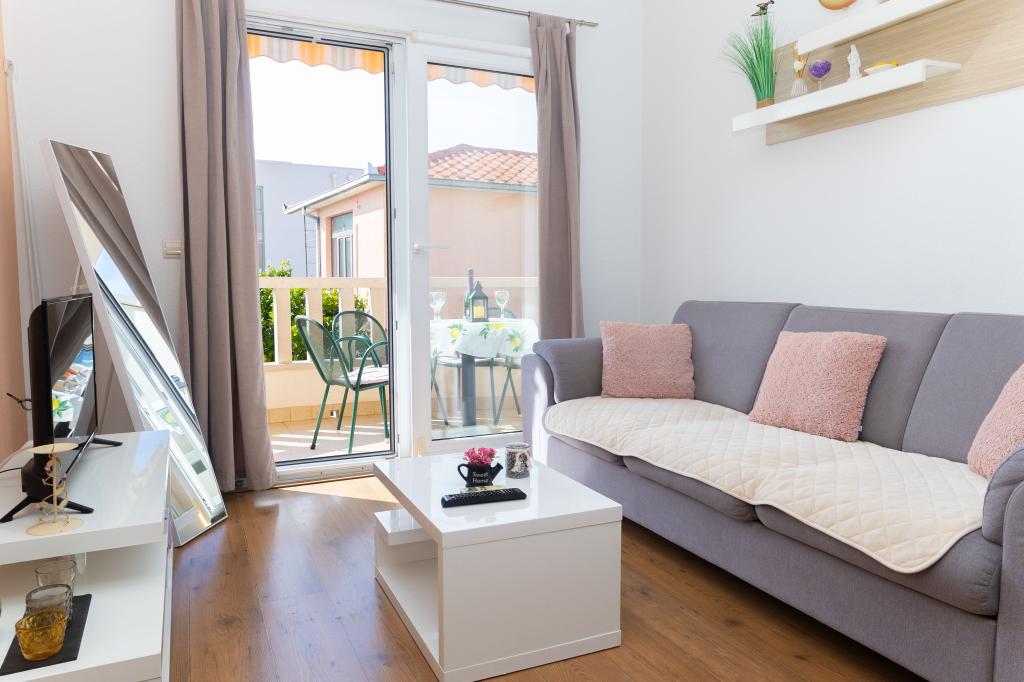 Apartmani se nalaze na 1. katu obiteljske kuće u jednosmjernoj ulici na zapadnom dijelu grada Makarske. Do šljunčane plaže Ratac se dolazi za 5 minuta hoda, a do centra grada za 15-tak minuta hoda šetnicom uz more. Apartmani se sastoje od dnevnog boravka s kuhinjom i blagovaonicom, 2 spavaće sobe (s bračnim krevetima) te kupaonicom s tuš-kadom. U dobro opremljenoj kuhinji gosti će pronaći ploču za kuhanje, hladnjak, posuđe i pećnicu. U dvorištu objekta se nalazi veliki roštilj koji mogu koristiti naši gosti. Apartmani imaju balkone s pogledom na more, zvučno izolirane zidove i TV ravnog ekrana s kabelskim programima.