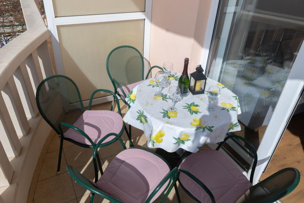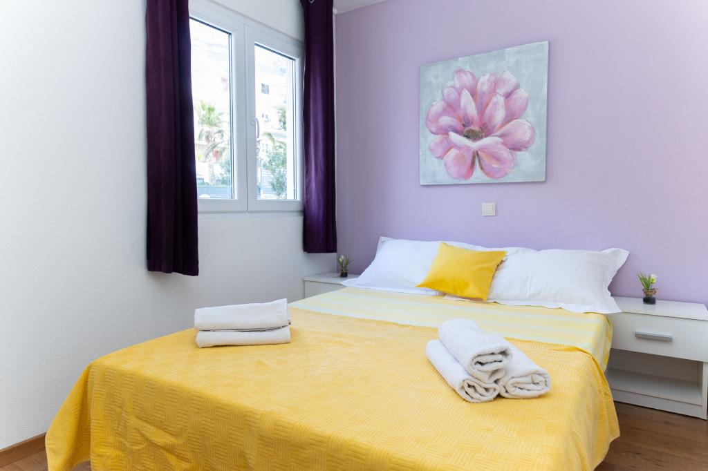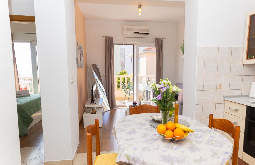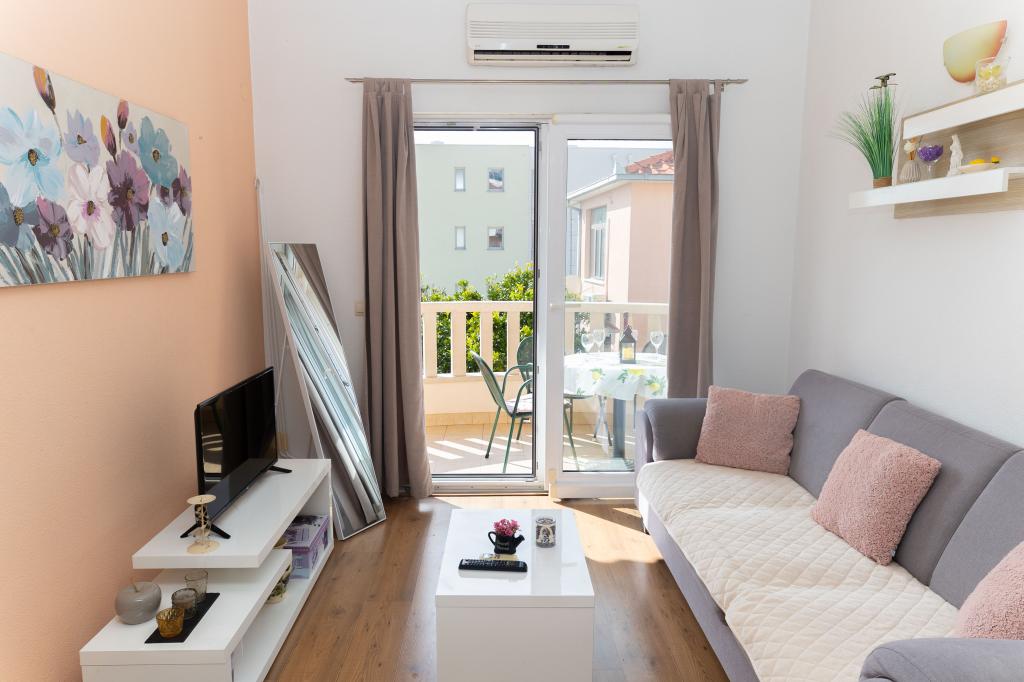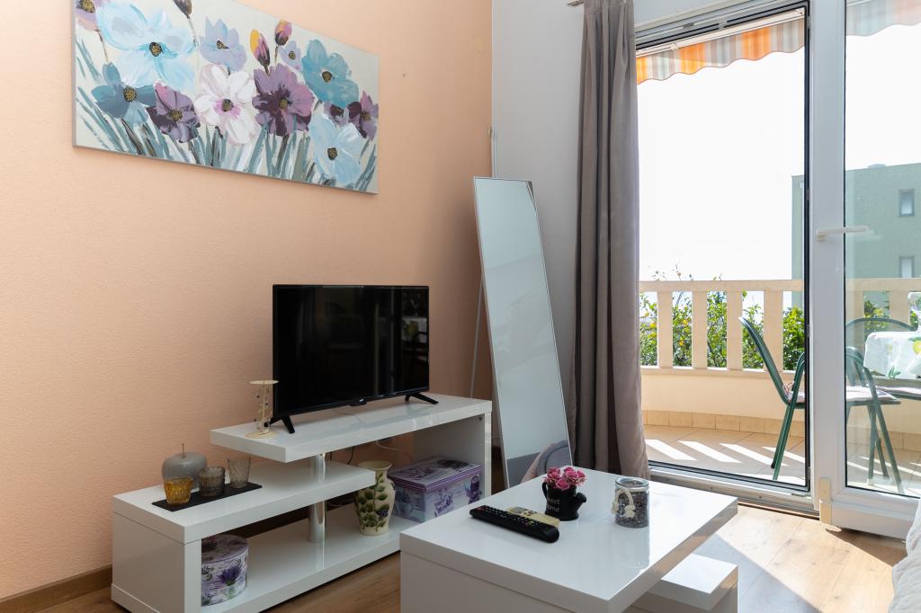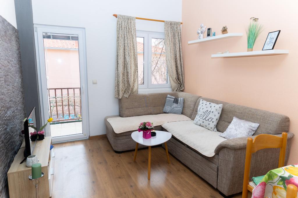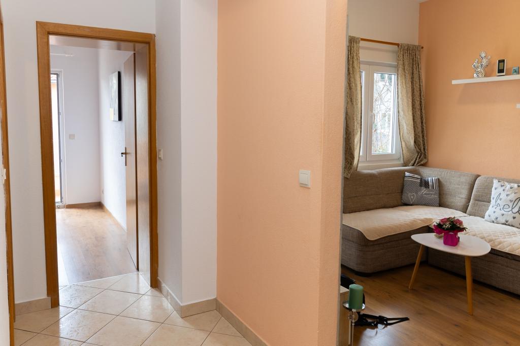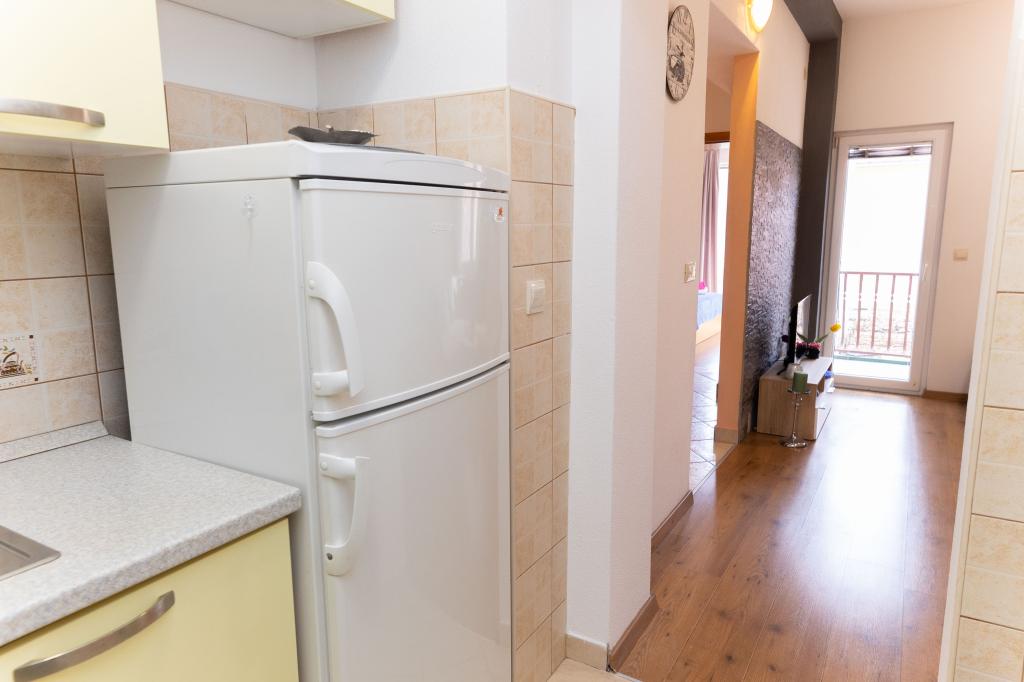 Apartmani se nalaze na 1. katu obiteljske kuće u jednosmjernoj ulici na zapadnom dijelu grada Makarske. Do šljunčane plaže Ratac se dolazi za 5 minuta hoda, a do centra grada za 15-tak minuta hoda šetnicom uz more. Apartmani se sastoje od dnevnog boravka s kuhinjom i blagovaonicom, 2 spavaće sobe (s bračnim krevetima) te kupaonicom s tuš-kadom. U dobro opremljenoj kuhinji gosti će pronaći ploču za kuhanje, hladnjak, posuđe i pećnicu. U dvorištu objekta se nalazi veliki roštilj koji mogu koristiti naši gosti. Apartmani imaju balkone s pogledom na more, zvučno izolirane zidove i TV ravnog ekrana s kabelskim programima.