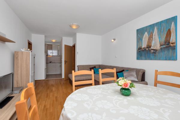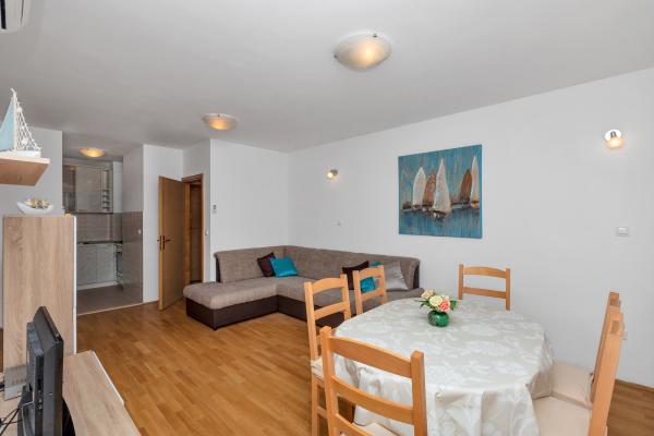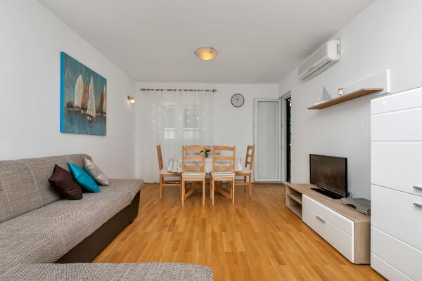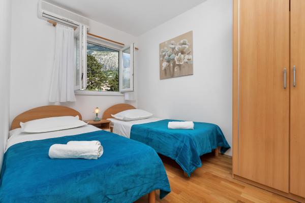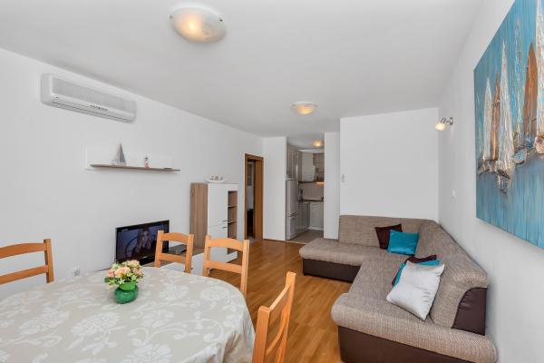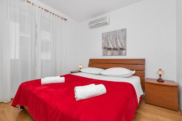 Nudimo vam kompeletno i suvremeno opremljeni apartman u centru Makarske udaljen od plaže svega 50m. Apartman se sastoji od dvije spavače sobe, kupaone, kuhinje, dnevnog boravka i balkona. Sve su prostorije klimatizirane, tv, free internet. Parking je osiguran. Predivna duga plaža okružena borovim stablima pruža se ispred kuće. U blizini su restorani, dječje igralište, ljekarna, trgovine... Za rezervaciju potrebno je uplatiti 20% akontacije. Za sva pitanja stojim vam na raspolaganju. Srdačan pozdrav, Katarina Birgmajer
