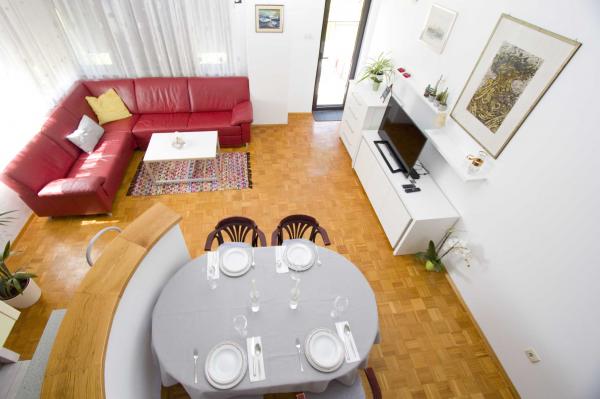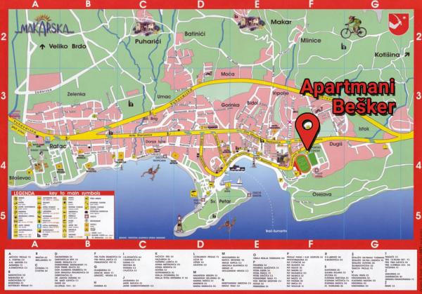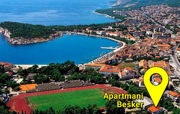 Kuća se nalazi nedaleko od centra Makarske, tako da je sve blizu pješke. Parking je osiguran unutar vanjskog dvorišta kuće. Sobe 1, 2, 3 i apartman A3 nalaze se u prizemlju. Sobe imaju zajedničku potpuno opremljenu kuhinju (mašina za suđe, pećnica, štednjak, frižider), te mogu koristiti stolove u dvorištu. Apartman A1 i A2 nalaze se na prvom katu. Imaju kompletno opremljenu kuhinju, klima, TV, satelit, balkon, Wi-Fi. Apartman A3: Soba, kupaona, kuhinja, klima, TV, Wi-Fi, stol u dvorištu Soba 1: Kupaona, klima, TV, Wi-Fi, zajednička kuhinja, stol u dvorištu Soba 2: Kupaona, klima, TV, Wi-Fi, zajednička kuhinja, stol u dvorištu Soba 3: Kupaona, balkon, klima, TV, Wi-Fi, zajednička kuhinja, stol u dvorištu Apartmani A1 i A2: Idealni za 4 osobe. Sastoje se od sobe, kupaone, dnevnog boravaka s kaučom kao pomoćnim ležajem, potpuno opremljene kuhinje (mašina za suđe i robu, pećnica, štednjak, frižider), balkon, klima, Wi-Fi i TV.