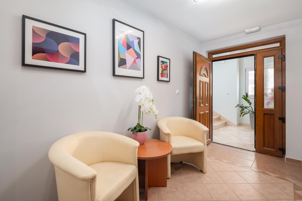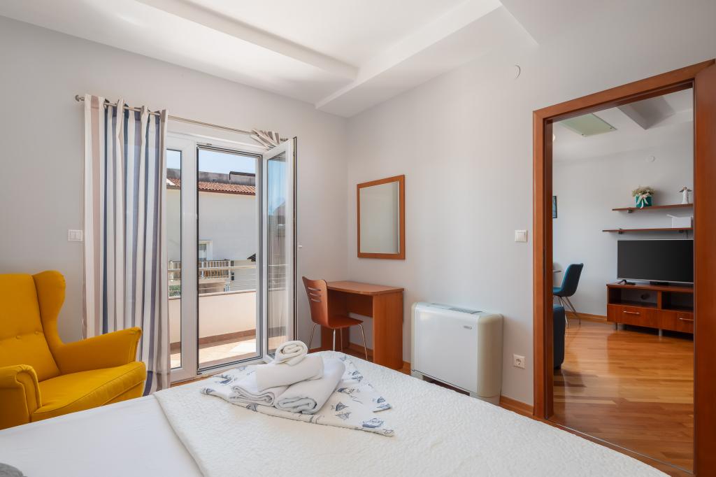 Apartmani Brkić nude prostrane obiteljske apartmane s kvalitetnim namještajem. Svi apartmani imaju kvalitetnu WiFi konekciju, klimazirani su i dolaze s besplatnim parkirnim mjestom ispred kuće. Naš penthouse apartman nudi veliku terasu s pogledom na more i kaminom za roštilj i peku. U prizemlju objekta nalazi se zajednička prostorija u kojoj se može prati rublje. Naše osoblje na raspolaganju je za savjete i pomoć tijekom cijelog vašeg boravka.