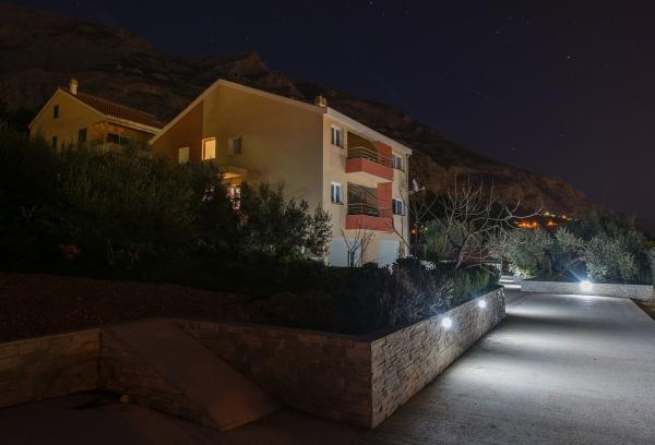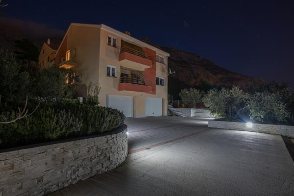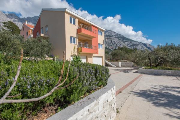 Apartmani Buba/Maslina su naša nova turistička kuća ćija je gradnja dovršena 2018. godine. Kuća je smještena u mirnom dijelu grada, na 95 metara nadmorske visine, na obroncima planine Biokovo. Od mora je udaljena 950 metara, a od centra grada 2 kilometra. Kuća je predviđena za miran obiteljski odmor. Izdvojena je od gradske gužve, te predstavlja idealno mjesto za boravak 6-8 ljudi po apartmanu u prostranom i ugodnom prostoru. Kuća se sastoji od tri etaže. U prizemlju je garaža za 2 auta i radni prostor, a svaka sljedeća etaža sastoji se od po jednog velikog apartmana za 6 osoba. Kuća ima veliku okućnicu sa maslinikom i povrtnjakom, a pred kućom su posađeni orah i maslina. Parkirni prostor je osiguran za 2 vozila po apartmanu.