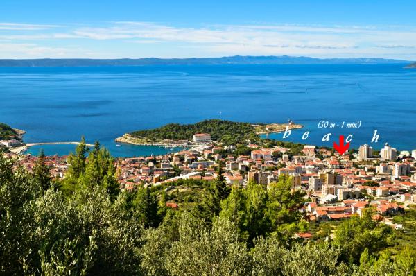 Apartmani Dina nalaze se na svega minutu hoda do plaže, u mirnoj ulici, bez buke. Do centra grada potrebno je manje od 5 minuta hoda, te se u blizini objekta nalazi sve što vam je potrebno, trgovine, restorani, disko, plaže...