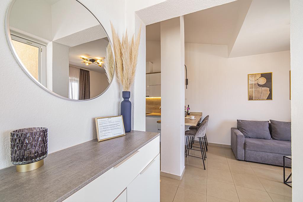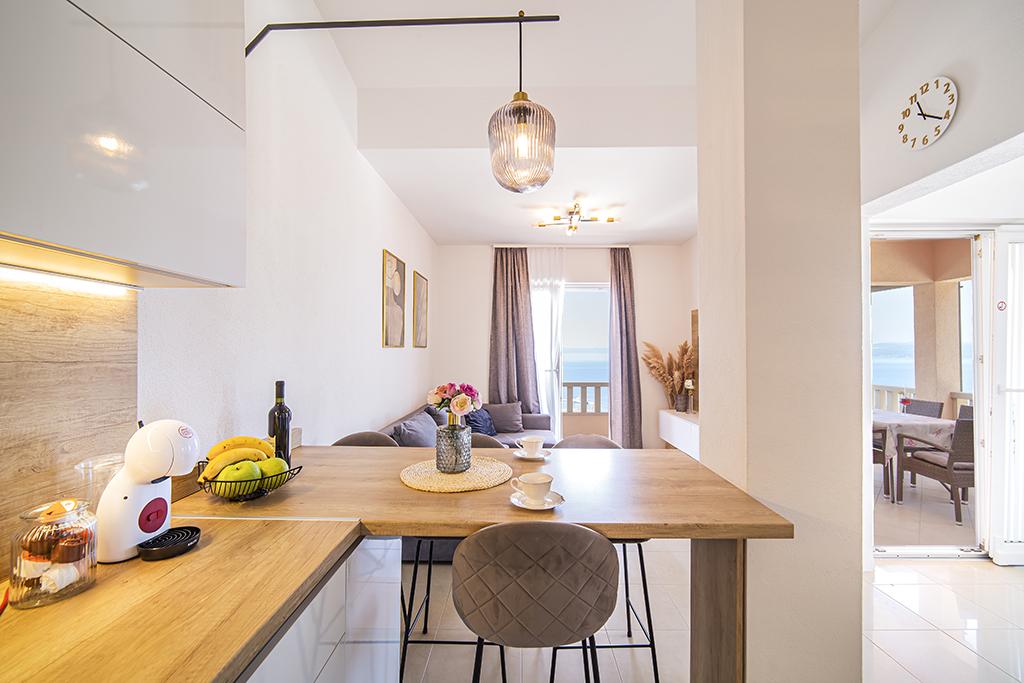 Apartmani Emilija, nalaze se uzbrdo iznad centra Makarske (600m), u mirnom obiteljskom kvartu. Potpuno novi i lijepo uređeni apartmani s prekrasnim pogledom na cijelu Makarsku, more i otoke, za vaš ugodniji boravak. Apartmani su renovirani 2022.godine te u blizini kuće od sad našim gostima stoji na raspolaganju parking. Apartmani su udaljeni 1000m od glavne plaže tj. 20-30min. ugodne šetnje preko Makarske rive do plaže. Ukoliko se želite odmoriti od svakodnevnih obaveza i provesti ugodan odmor sa svojim najbližima svakako nas posjetite jer mi znamo kako udovoljiti našem gostu.
