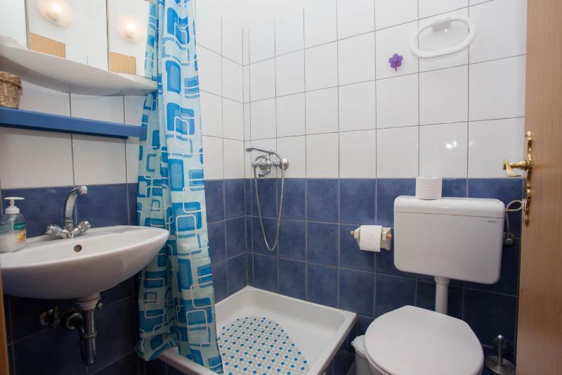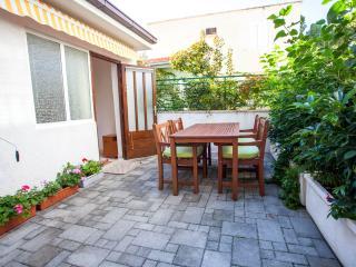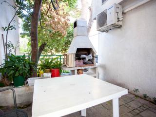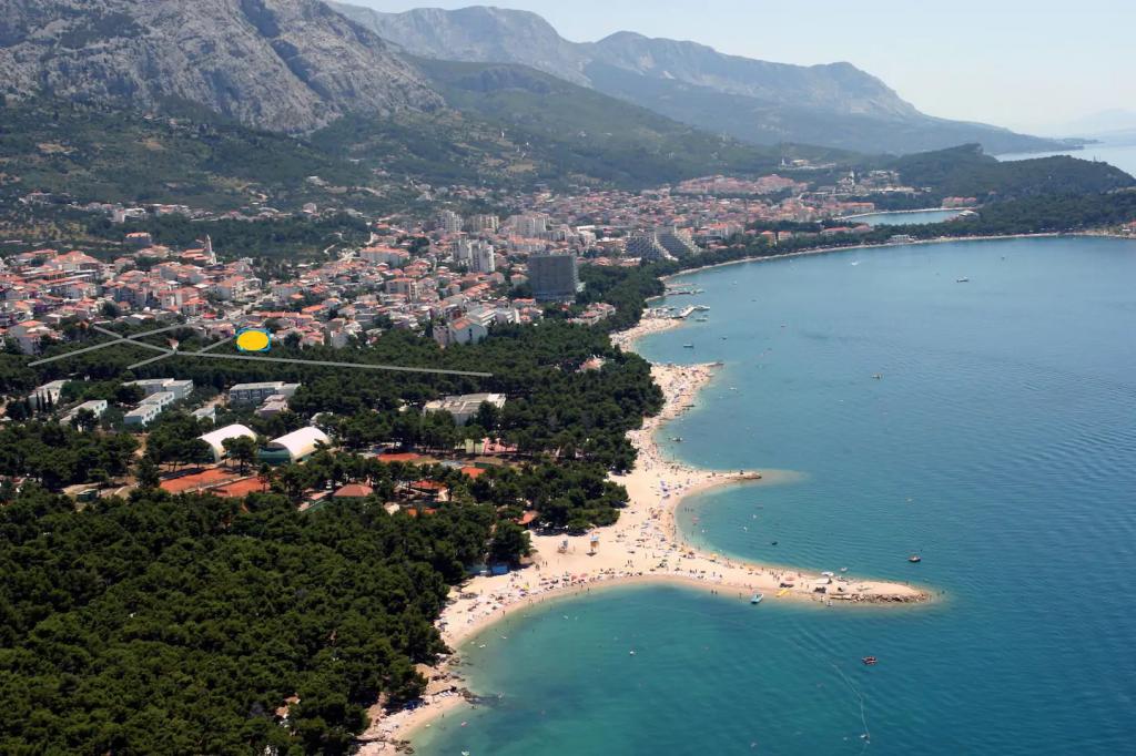Makarska, Maslinarska ulica 39, drugi red do mora. Plaža pogodna za malu djecu, 3 minute hoda. Dvorište oko kuće za bezbrižnu igru djece. Gril na plin ili ugljen. Kompletno i suvremeno opremljeii apartmani i sobe u mirnom predjelu. Objekt se nalazi 10 minuta hoda uz plažu do centra.