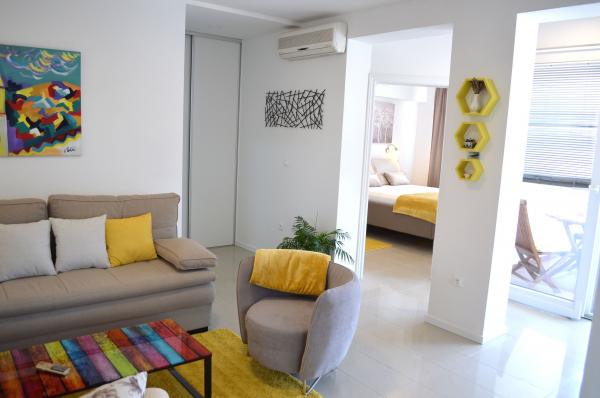 Naša obiteljska kuca, nalazi se u jednoj maloj, mirnoj ulici, veoma blizu plaze i uzeg centra grada. Kako se nasa obitelj bavi turizmom vec četrdeset godina, nase smjestajne jedinice smo iz godine u godinu prilagodavali potrebama gostiju. Danas su to novi i potpuno opremljeni apartmani. Recenzije nasih gostiju kazuju da su u potpunosti zadovoljni. Dakako, uvijek smo na raspolaganju gostima za njihove individualne potrebe. Ako zelite miran i ugodan odmor, rado cemo biti vasi domacini.