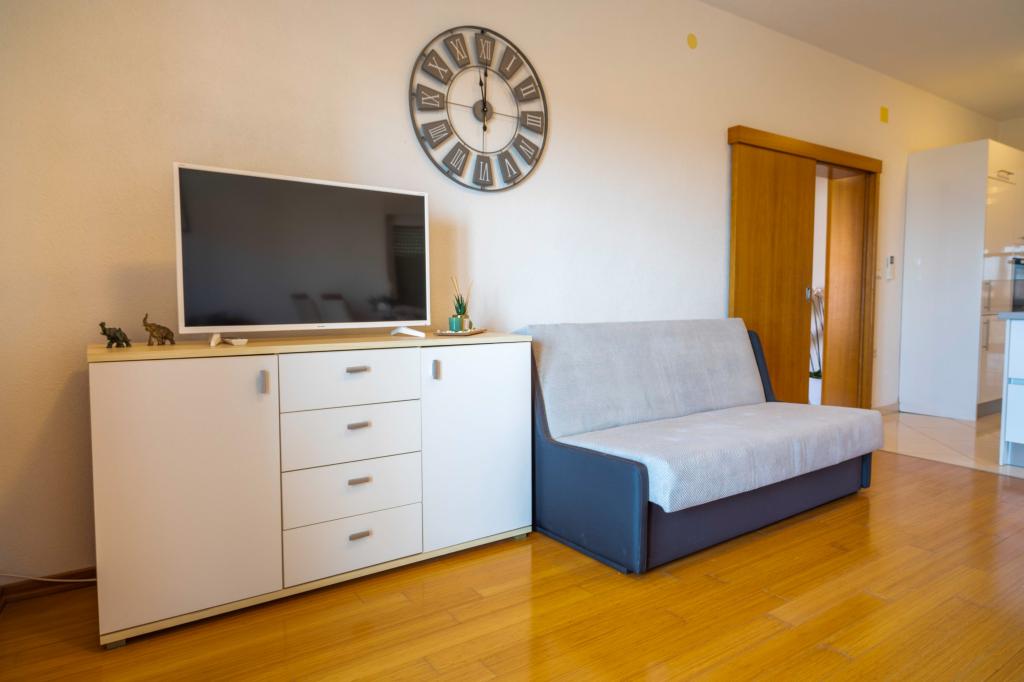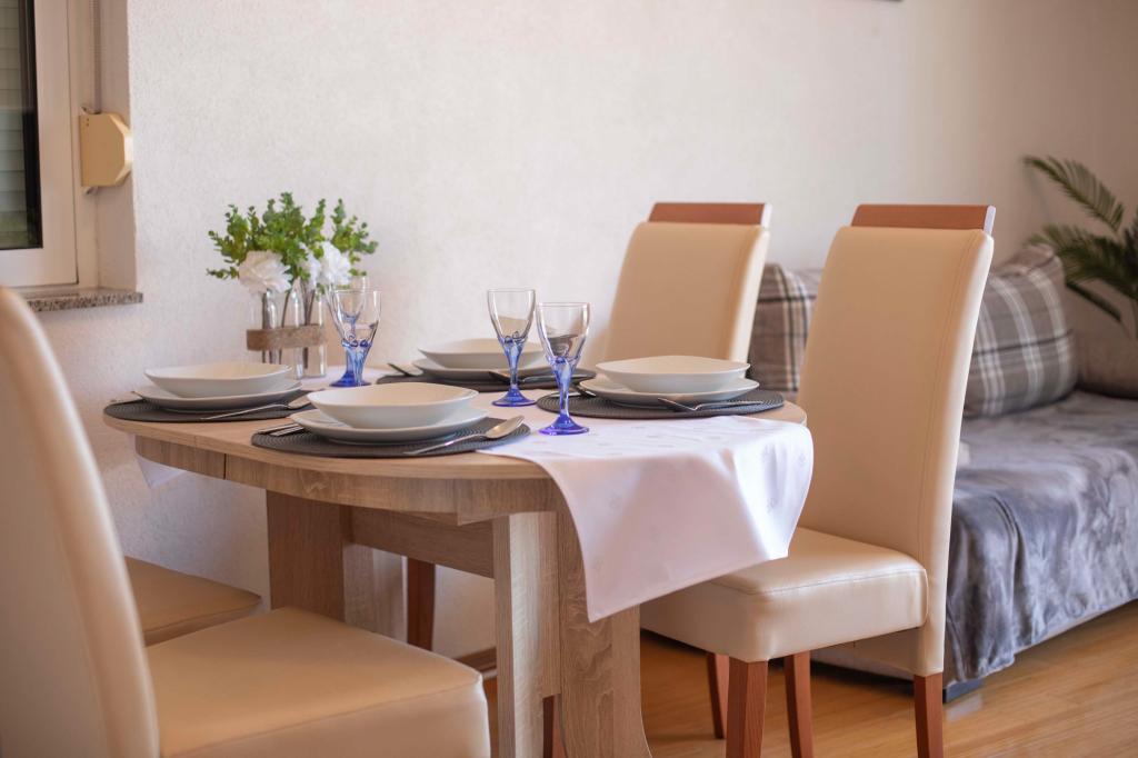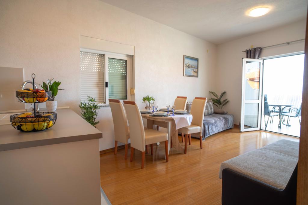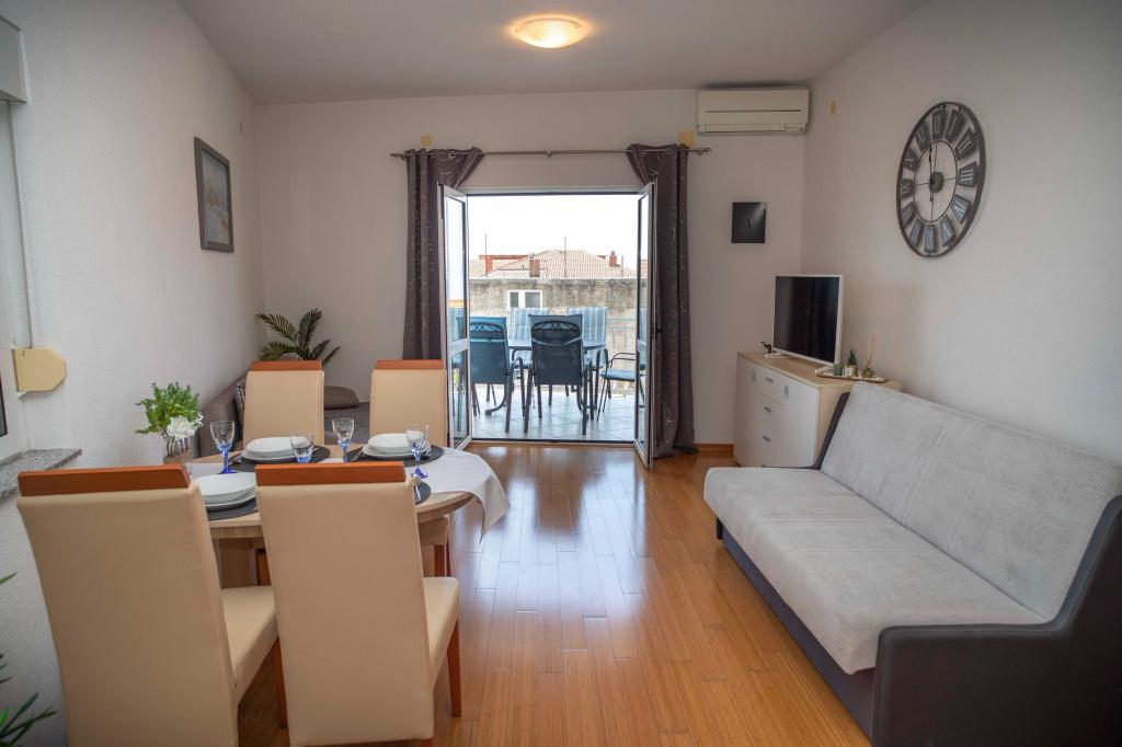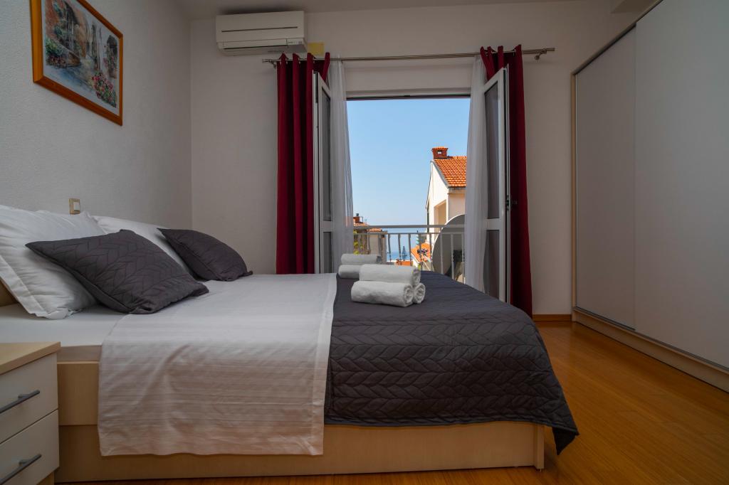 Dobrodošli u apartman "Ivana" s pogledom na more i garažnim prostorom. Idealno za 2 odrasle osobe i 4 djece. Sastoji se od spavaće sobe, kupaonice, dnevnog boravka s 2 sofe na razvlačenje i potpuno opremljene kuhinje. Klima uređaji su u dnevnom boravku i spavaćoj sobi.