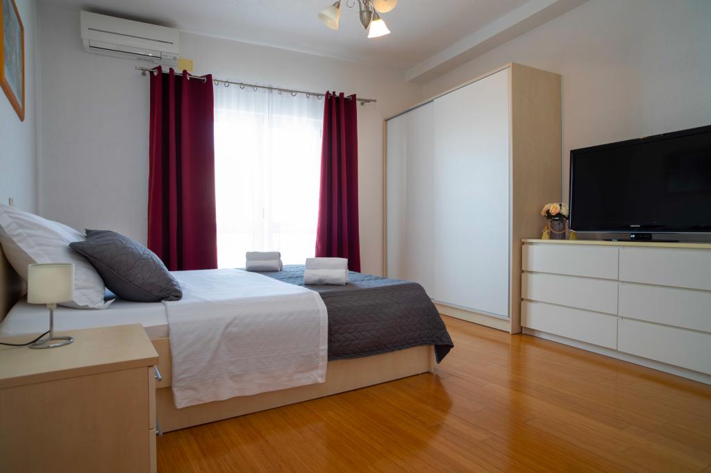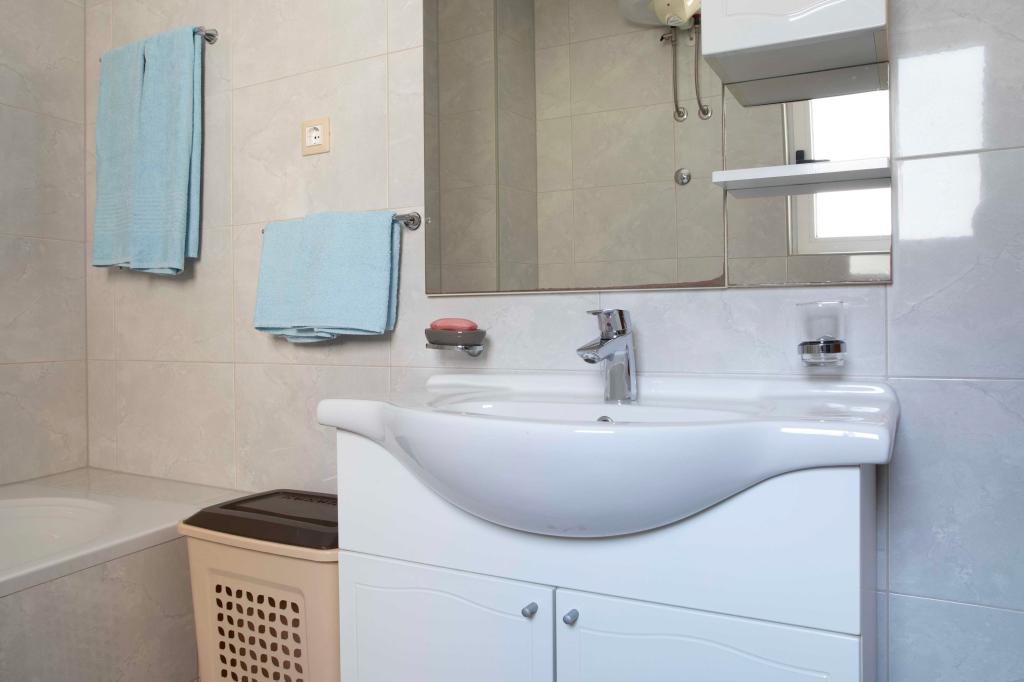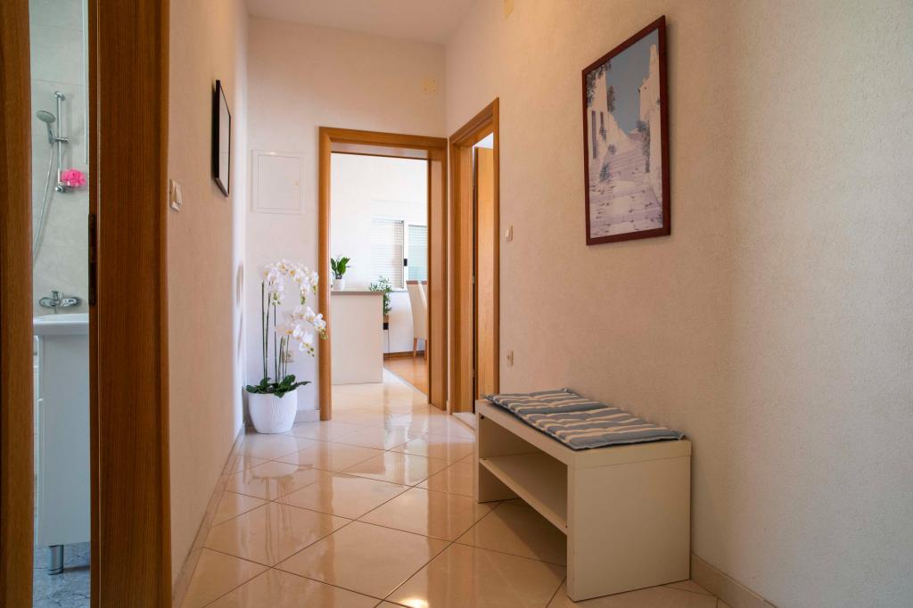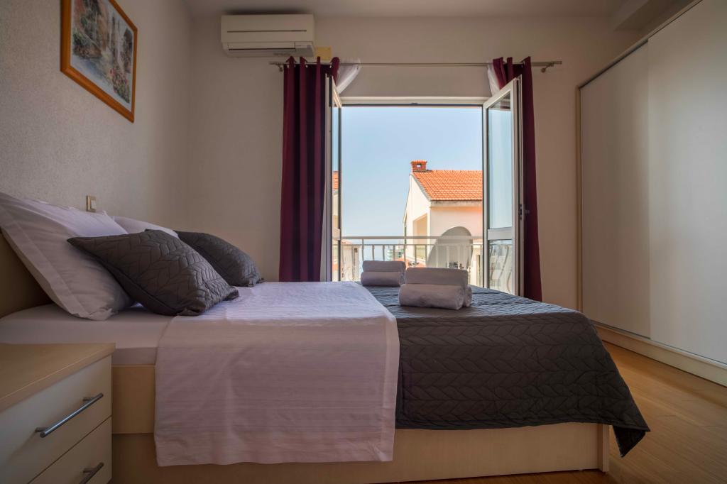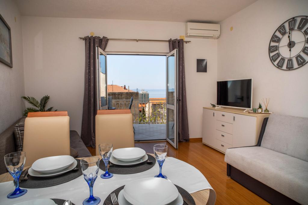 Dobrodošli u apartman "Ivana" s pogledom na more i garažnim prostorom. Idealno za 2 odrasle osobe i 4 djece. Sastoji se od spavaće sobe, kupaonice, dnevnog boravka s 2 sofe na razvlačenje i potpuno opremljene kuhinje. Klima uređaji su u dnevnom boravku i spavaćoj sobi.