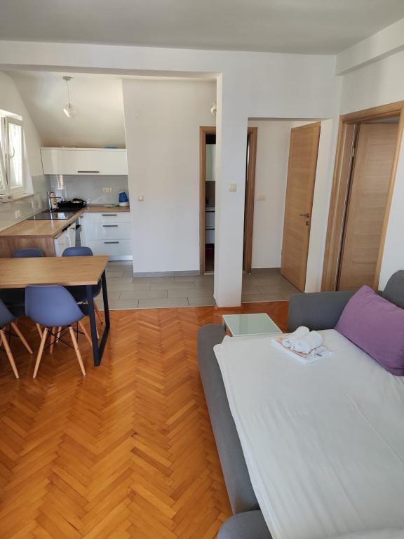 Predivan moderan apartman, veoma blizu mora, miran kvart, parking ispred kuće, divan vrt, balkon ujutro u hladu, g. Miloš i gđa Željka domaćini za poželjeti