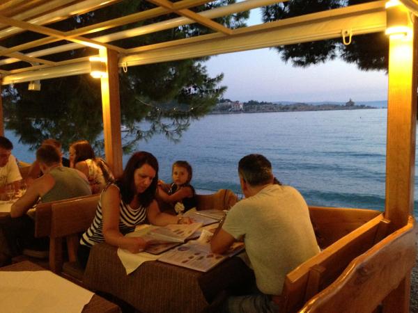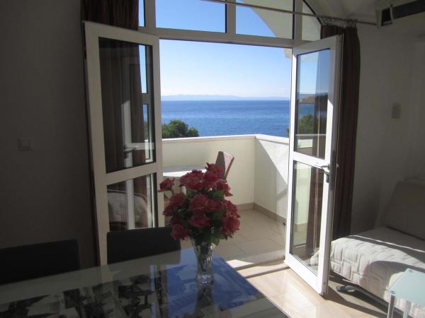 Suvremeno opremljeni apartmani na najatraktivnijoj poziciji u Makarskoj, smješteni prvi red do mora (udaljenost do mora 5 metara) sa famoznim pogledom. U sklopu objekta nalaze se 2 restorana, kao i slastičarna. do centra imate 10 minuta hoda.Apartmani su novo renovirani.Naši apartmani su za 2.3.4 osobe.sa nevjerovatnim pogledom.
