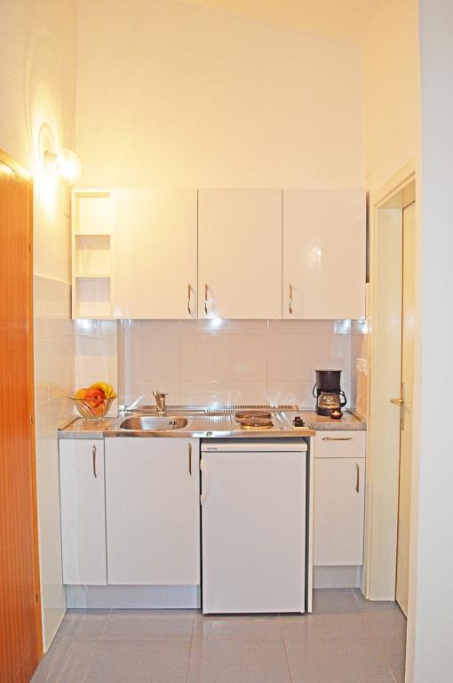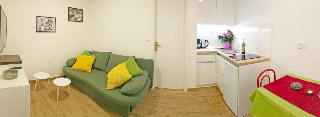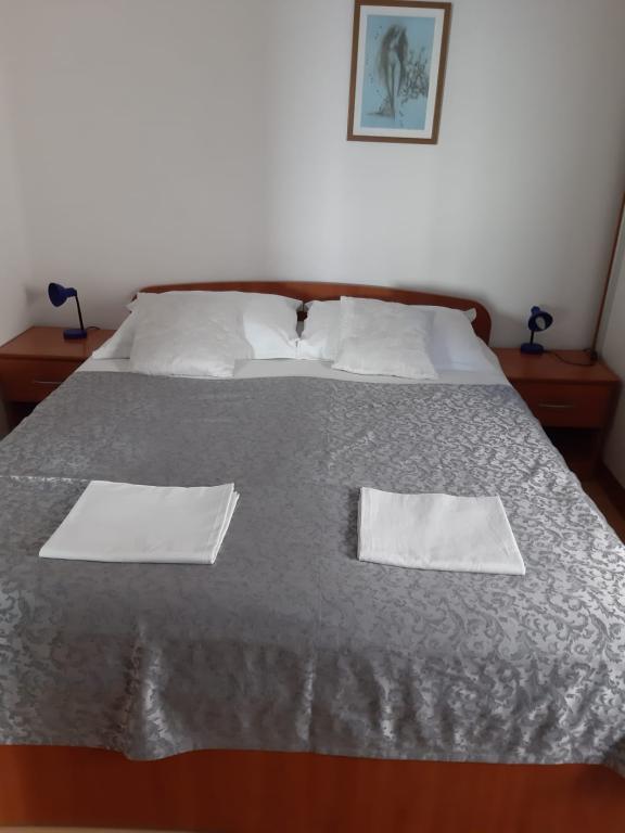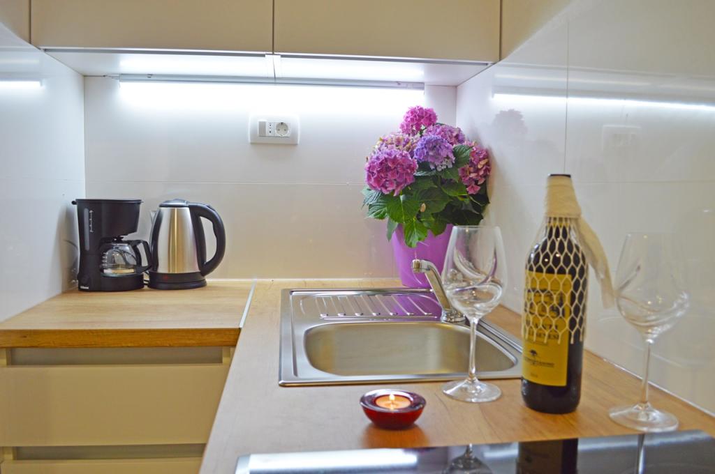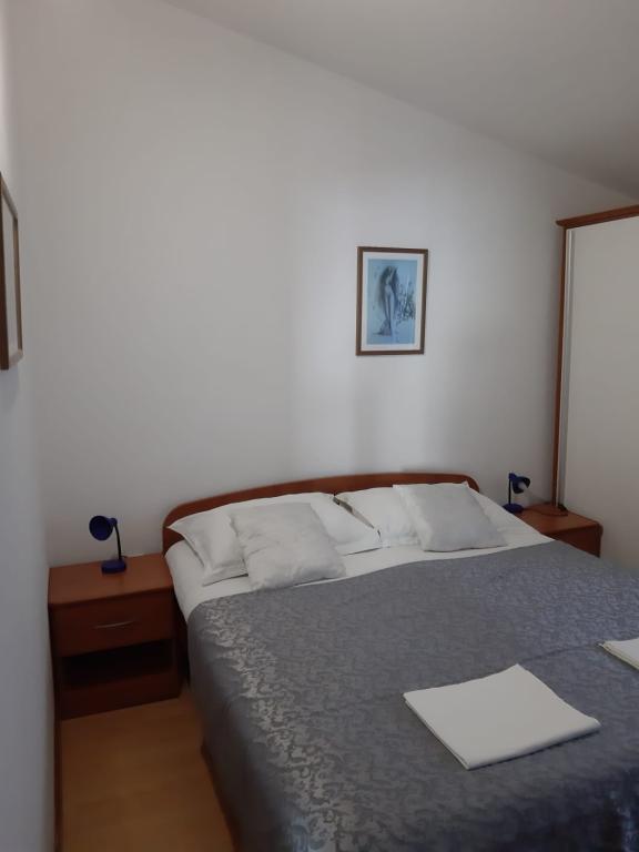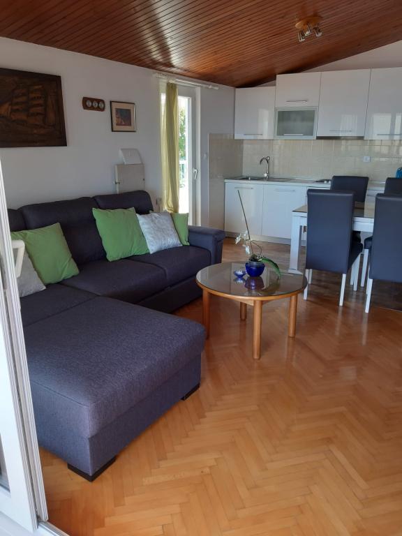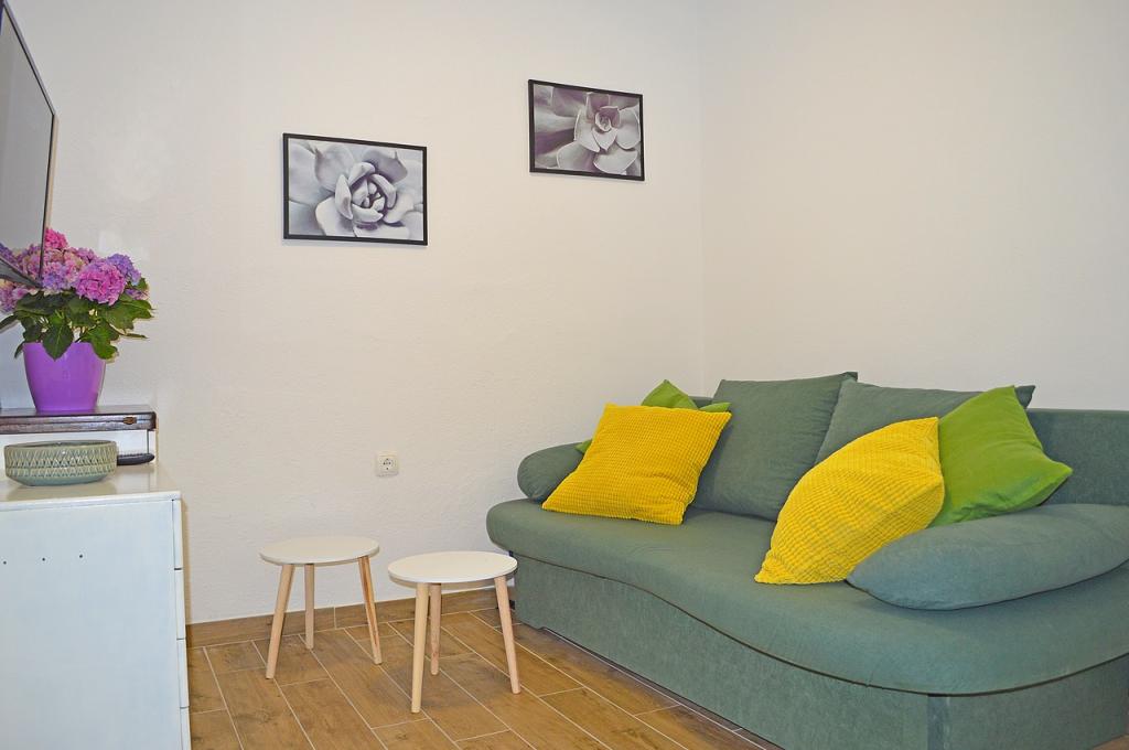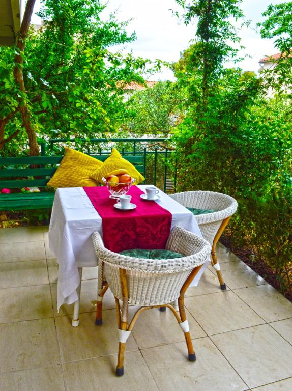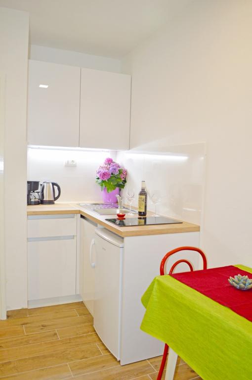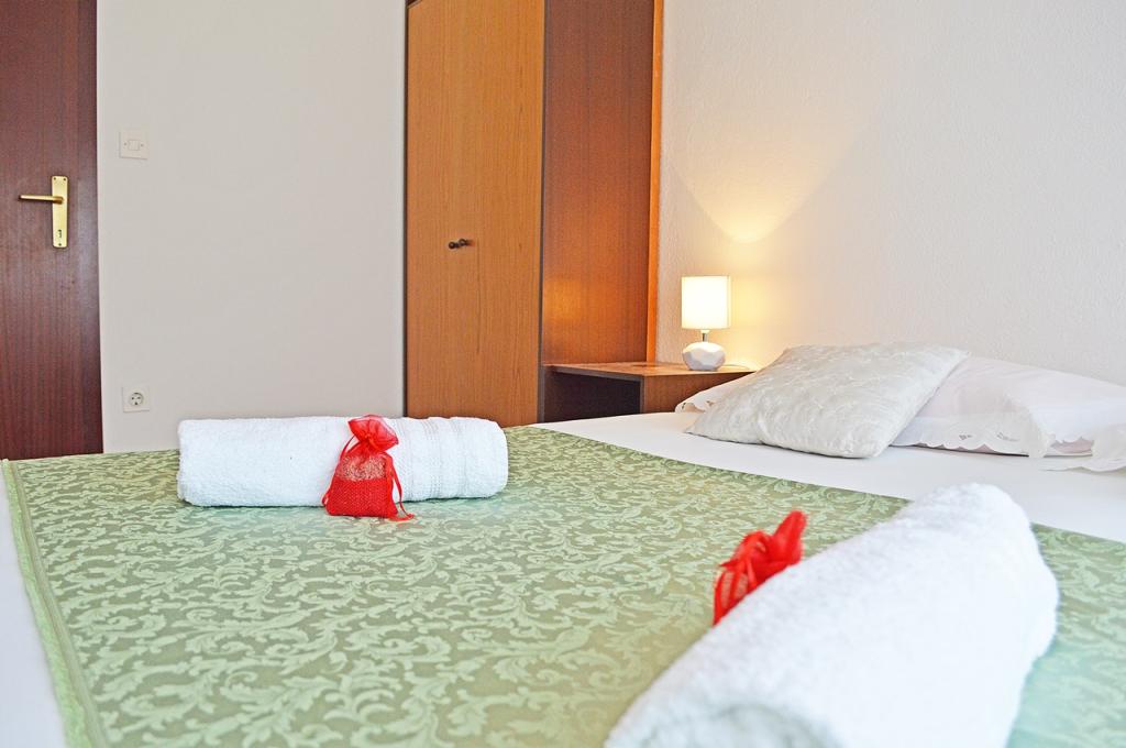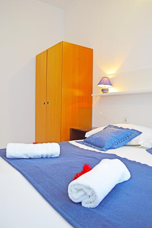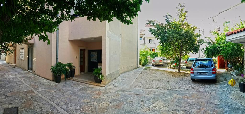 Kuća se nalazi u mirnom djelu grada, u maloj slijepoj ulici bez buke. U dvorištu se nalazi sjenica s grillom i stolom. Parking je osiguran i nalazi se ispred kuće, a uključen je u cijenu. Objekat je udaljen od plaže 5 min hoda, a od glavne rive i trajekta 10 min. Smještajne jedinice opremljene su svim potrebnim za vaš ugodan odmor. Posteljina se mijenja svakih 7 dana, a ručnici svaka 3 dana.